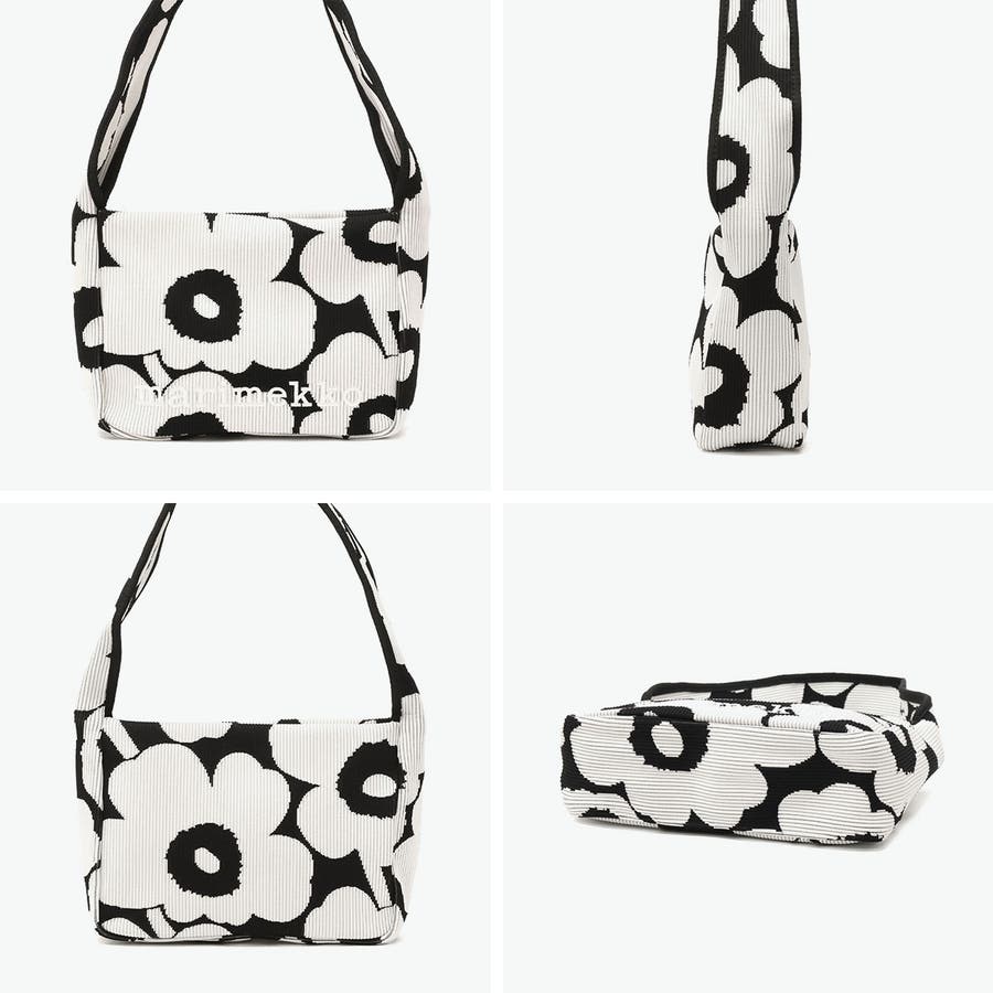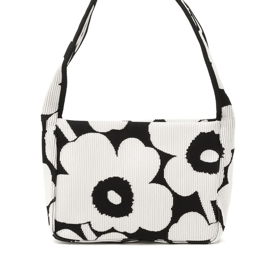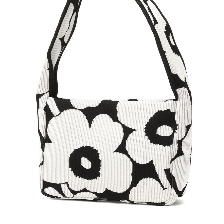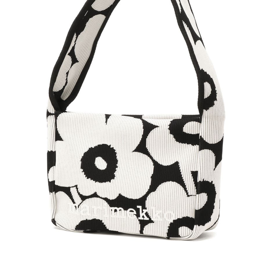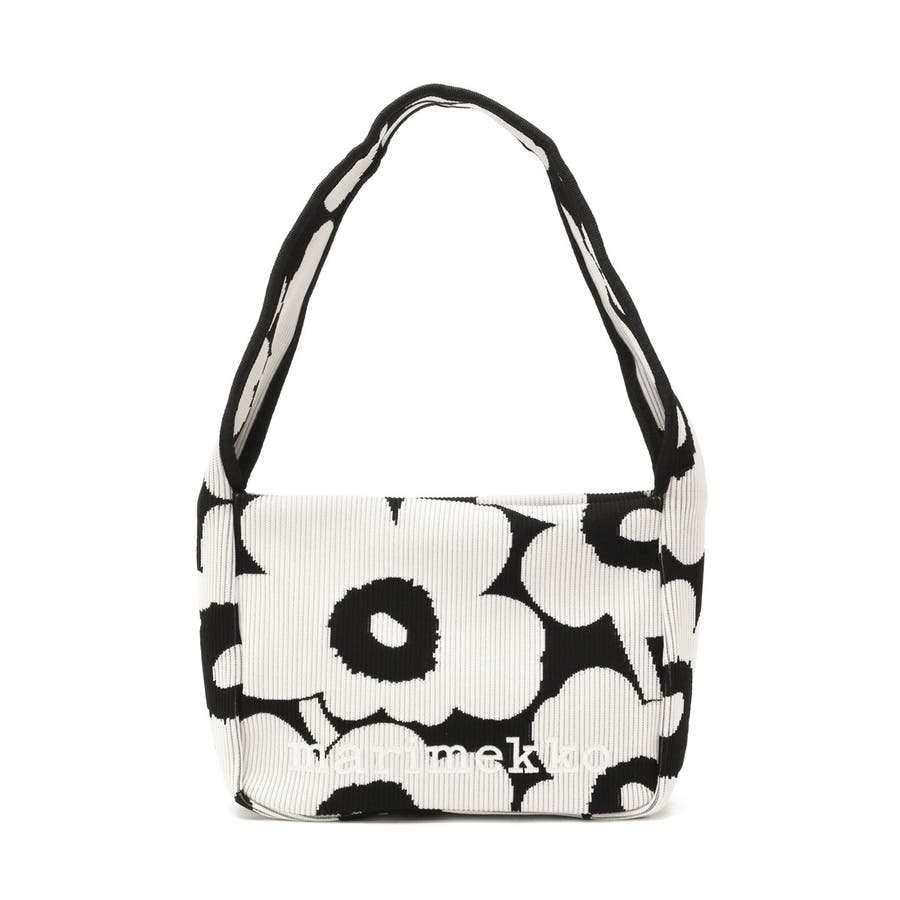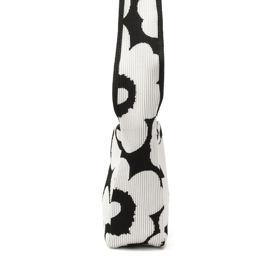 アイコニックな"Unikko柄"にロゴ刺繍を施したハンドバッグ。ニットリブ素材にはUnikko柄が大胆に描かれ、幅広のショルダーストラップで存在感ある仕上がり。『marimekko』らしい花柄が一際目を惹くアイテムとなっています。