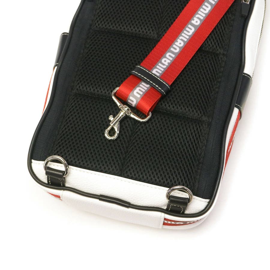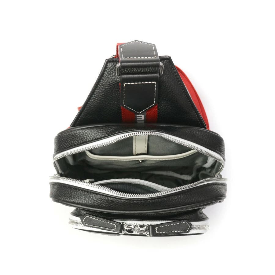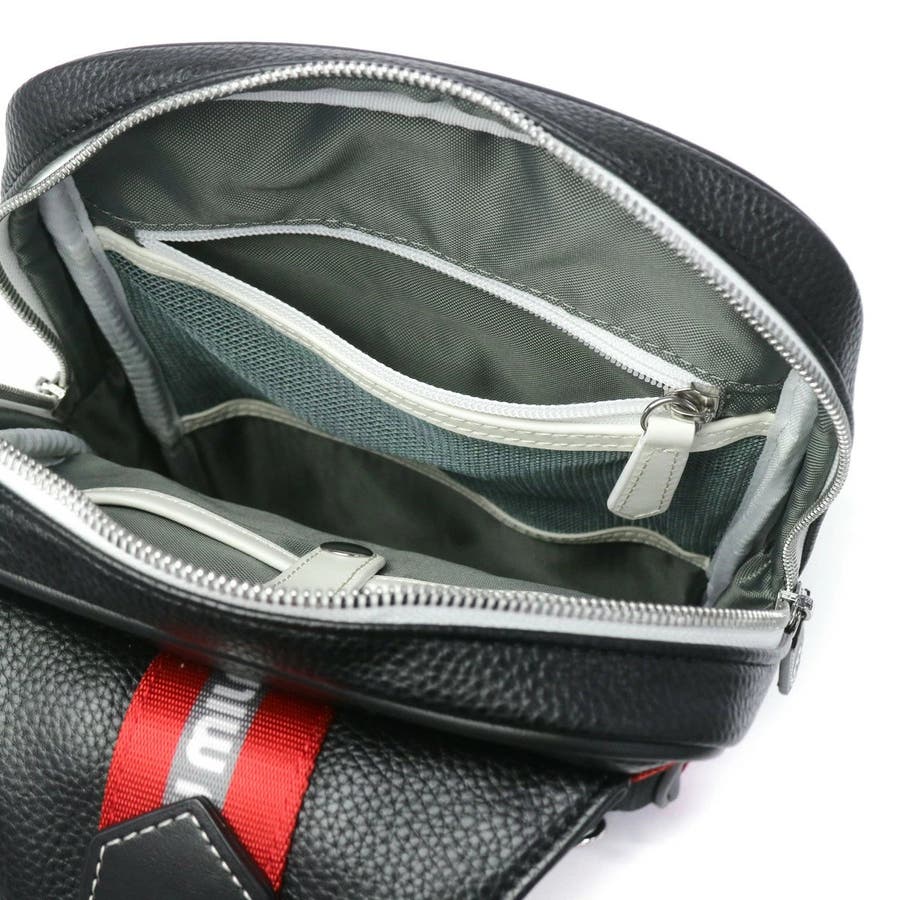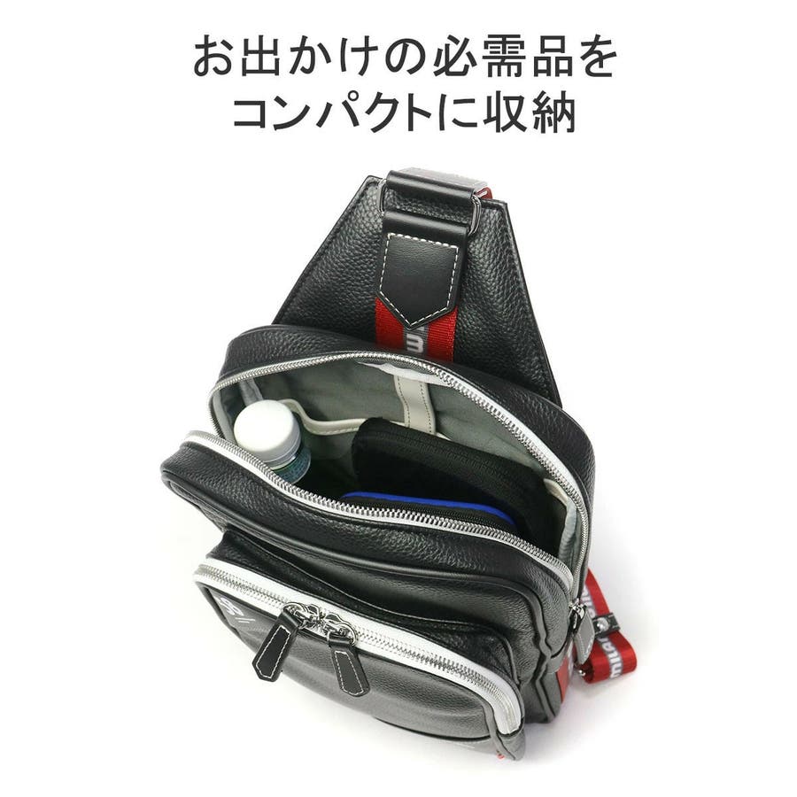 | 装いのアクセントになる ラインテープに注目 シュリンク合皮を使用したタウンカジュアルなボディバッグ。モノトーンベースに赤いロゴ入りのラインテープが目を惹きます。ショルダーストラップは左右どちらにも取り付け可能で、利き手を選ばずお使いいただけます。軽量で扱いやすく、日常や旅行など幅広いシーンで活躍してくれるアイテムです。 |