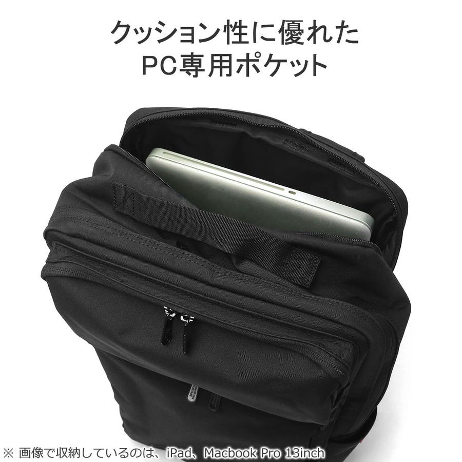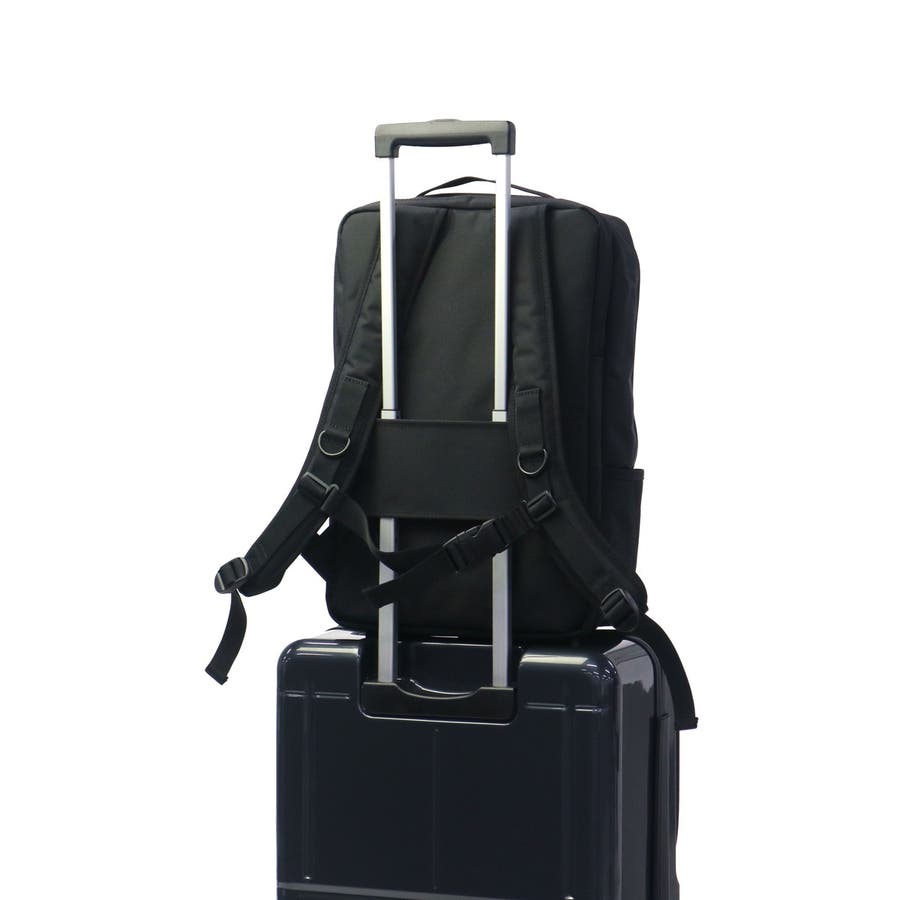 メイン素材に使用している「CORDURA HP Fabric」は、軽量でありながらも高強度を誇る、機能性の高い素材。裏面には防水加工を施し、急な雨など、水濡れから荷物を守るパフォーマンス性に優れた仕上りです。また、キャリーオンできる背面ストラップや、フロントの大きな立体ポケットなど、気の利いた機能を備えました。