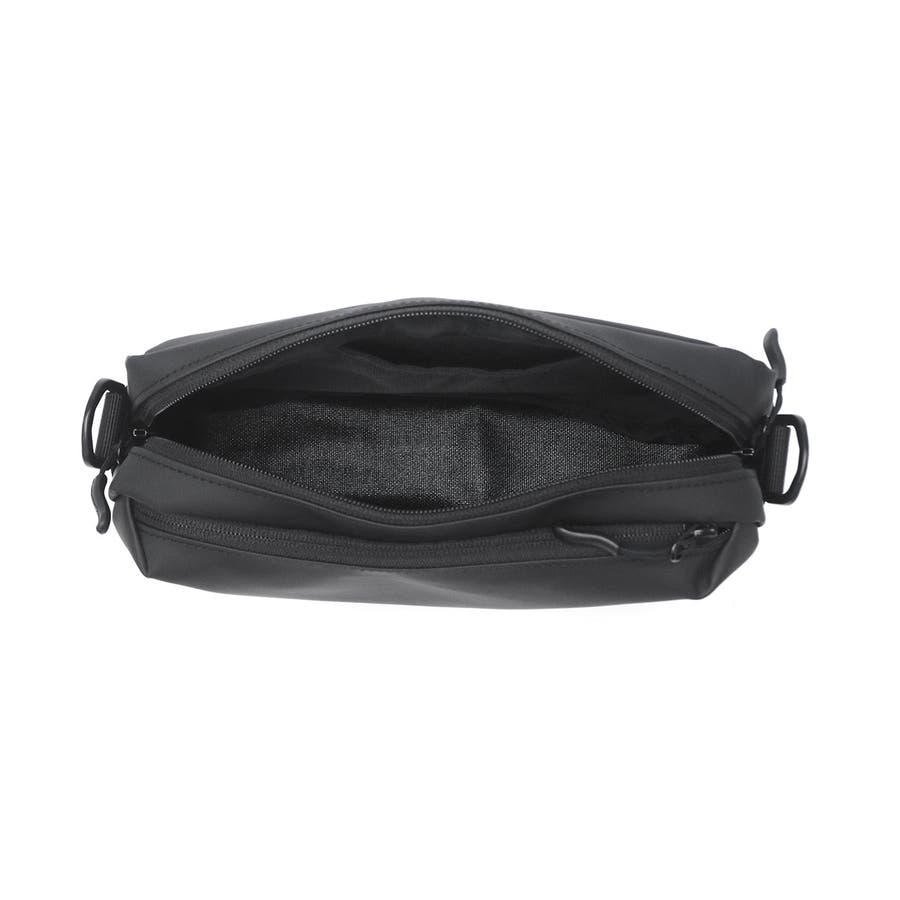 防水素材“ベジレザー”を使った「HYDROPHOBIC」シリーズのミニショルダーバッグ。ペットボトルも入るちょうどいいサイズ感で、ちょっとしたお出かけにぴったり。マットな質感がほどよくモード感をプラスしてくれる、デザインと機能を兼ね備えた頼れるアイテムです。