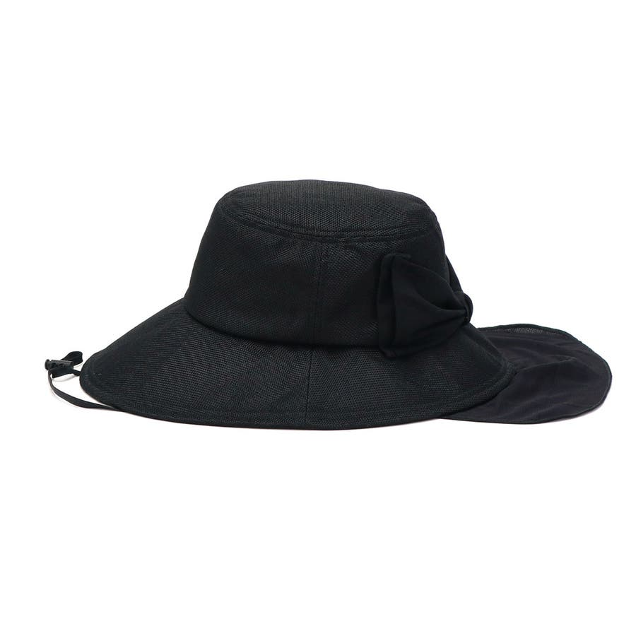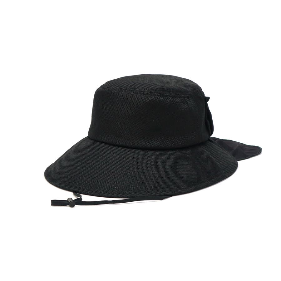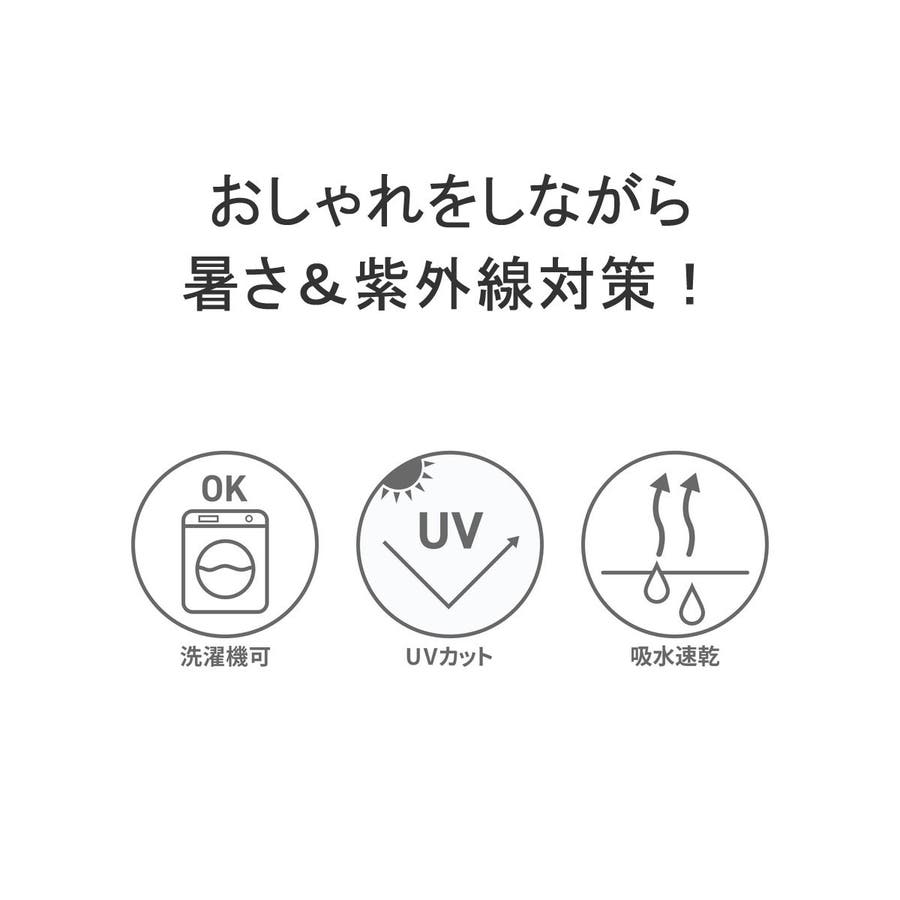 顔回りを自然にカバーしてくれる、つばの広いキャペリンハットです。涼しげで落ち着いたトーンのカラーと、背面についた大きなリボンがポイント。UVカット機能も完備しており、厳しい暑さ・紫外線対策もばっちり!さらに接触冷感のネックガード付きで、首元をひんやりと冷やしてくれます。