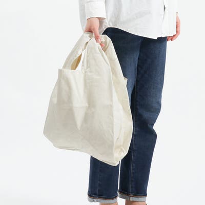 ジャパンメイドにこだわったベーシックなエコバッグ。味わいのあるアメリカンな雰囲気漂う素材を使用し、ファッションを格上げしてくれるスタイリッシュなアイテム。シンプルなデザインと豊富なカラーバリエーションで、お買い物バッグから通勤・通学スタイルにも合わせやすい一点です。A4サイズに対応したシンプル構造で、ざっくりと荷物を収納することができて楽ちん。サイドのマチは荷物量に合わせて広がる設計で、抜群の収納力を発揮!大きすぎず丁度いいサイズ感で、あらゆるシーンで重宝できます。またコンパクトに折りたたんで持ち運べるので、旅先のサブバッグとしても活躍します。くたっとしたチノクロスの生地は使い込むほど味わい深いユーズド感を出してくれます。裏地には生成りコットンを合わせ、また、つなぎ目にはパイピングを施し強度を増しています。細部までこだわりを感じられるトートバッグです。