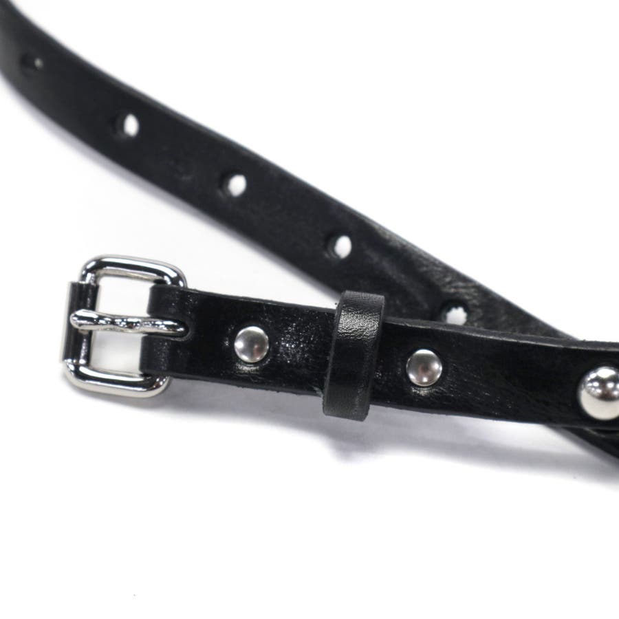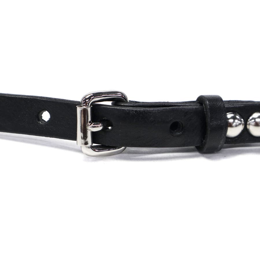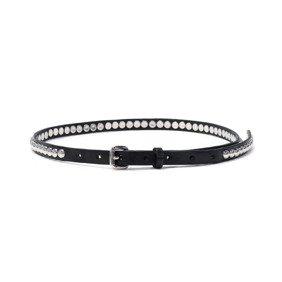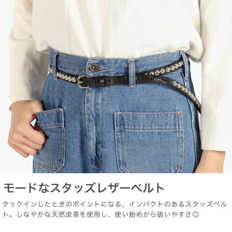 華奢なシルエットにスタッズが輝く本革レザーベルト。ユニセックスで楽しめる細身デザインが、カジュアルからモードまで幅広く対応。日本製の上質な牛革が、大人の装いにさりげないスパイスを添えます。