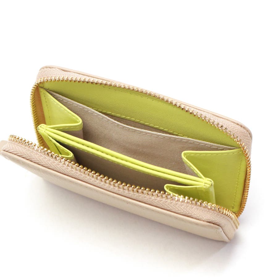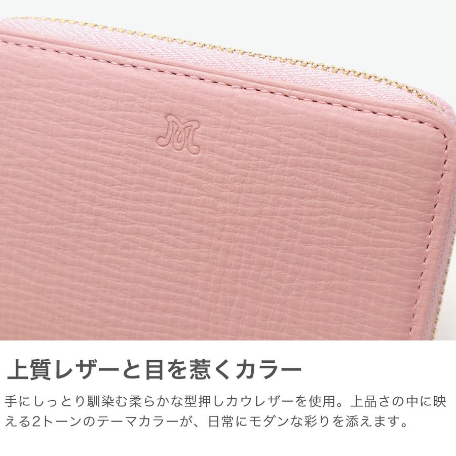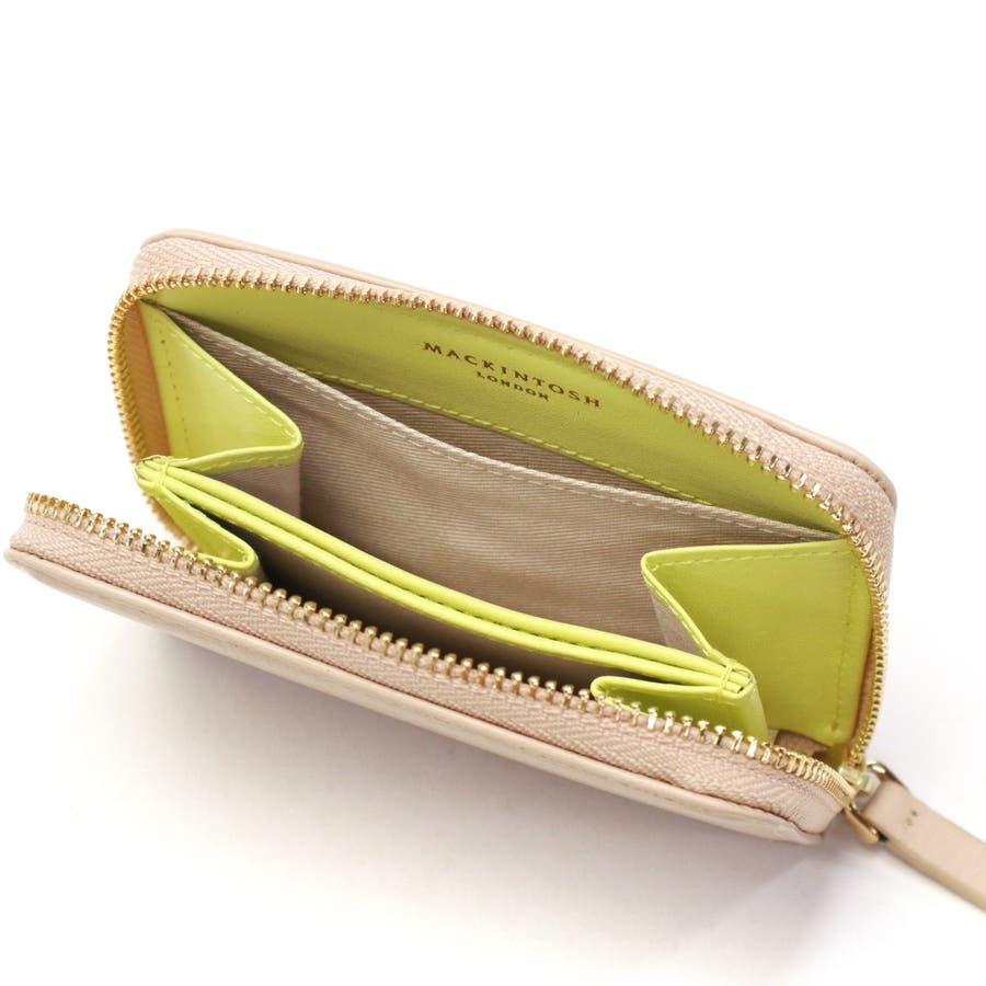 マッキントッシュロンドンのイニシャルロゴを使用した『EM』シリーズのコインケース。内部はセンターに仕切りがあり収納部が別れているため、カードや小銭の仕分けや出し入れがしやすい設計。手元を明るく見せてくれるパステルカラーを採用し、優しく爽やかな雰囲気を演出します。外装と内装で異なるカラーを組み合わせることで開いた時のイメージが変わり、より印象的なアイテムとなっています。