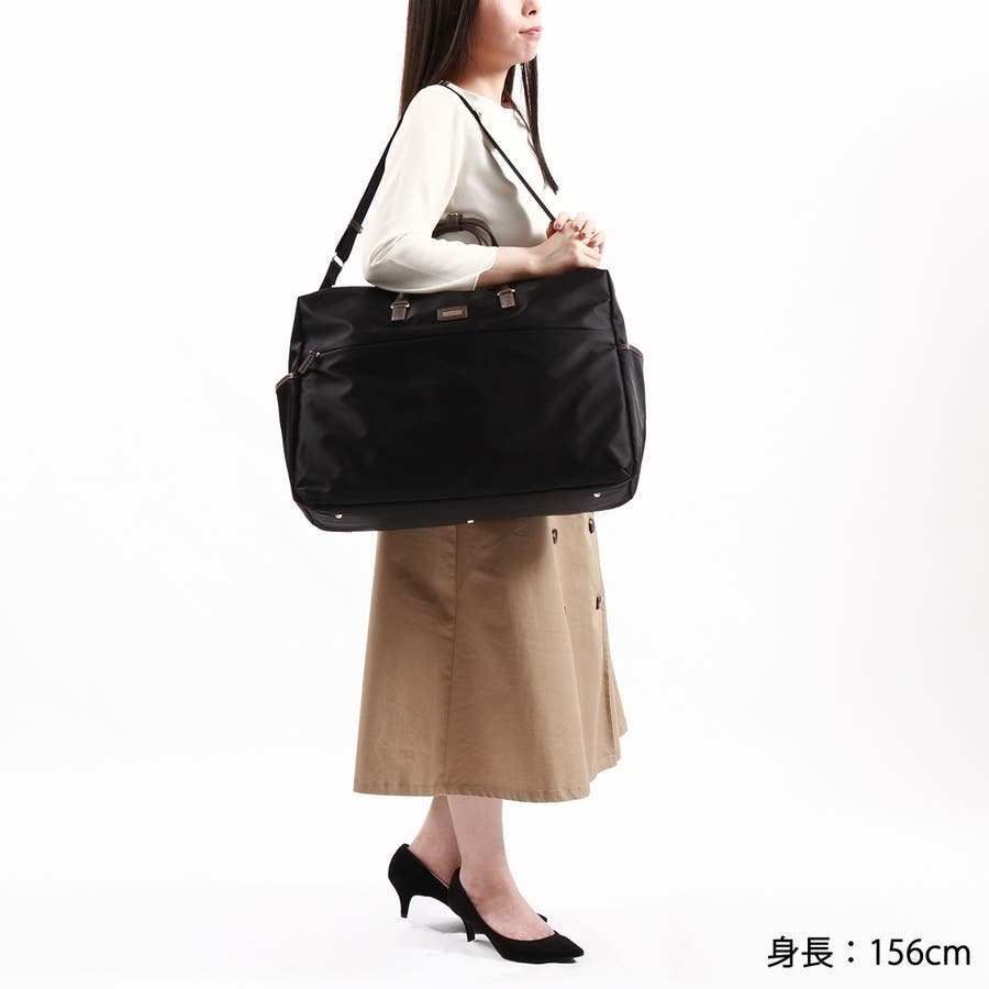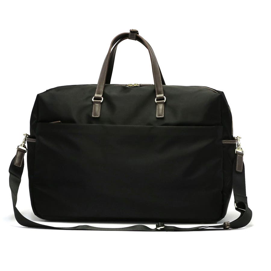 スタイルを選ばない、シンプルで上品なレディーストラベルシリーズ『アメリア2』の2WAYボストンバッグ。こちらは1泊程度の旅行にちょうどよい容量26Lサイズです。B4サイズに対応した収納部は、シンプルなつくりで荷物をざっくりと収納できます。本体生地には撥水・撥油機能を持つ生地を採用しているので、ちょっとした雨であれば対応できる点もポイント。底面の汚れを防ぐ底鋲や、スーツケースへのセットアップ機能も備えた使い勝手の良いアイテムです。