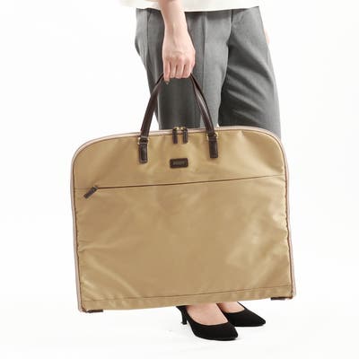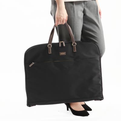 スタイルを選ばない、シンプルで上品なレディーストラベルシリーズ『アメリア2』のガーメントバッグ。旅行や出張、冠婚葬祭など大切な衣類の持ち運びに最適なアイテムです。内装は三つ折り仕様となっており、便利な小物ポケットも装備。本体生地には、撥水・撥油機能を持つ生地を採用しているので、ある程度の雨なら影響を受けにくいので安心です。