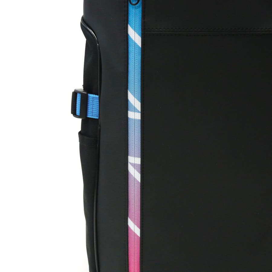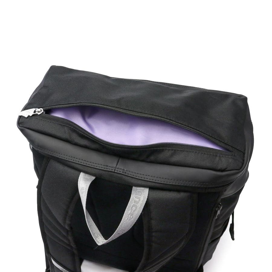 オリジナルのグラデーションファスナーがポイントになったボックスリュック。荷物がたっぷり入る30L容量の収納部には、クッション性の高いPCスリーブを完備。背面のジッパーは収納部に直接アクセスできる構造となっており、荷物を取り出しやすい嬉しい設計です。本体には撥水加工を施しているので雨の日でも安心。背負い心地のよい芯材を採用することで荷物の多い日でも使いやすく、通学や部活、レジャーなどマルチに活躍するアイテムになっています。