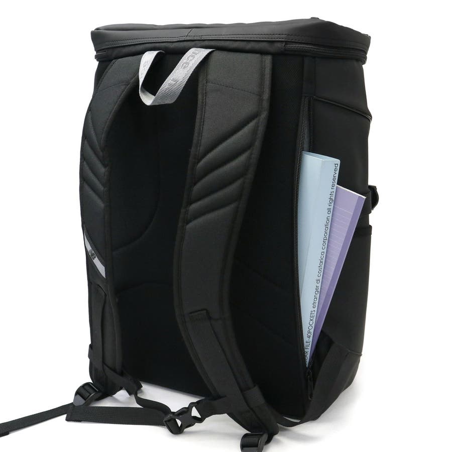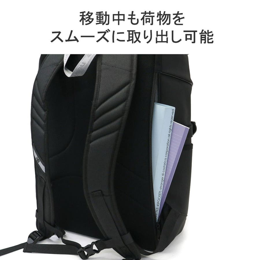 スクールからレジャーシーンまで、マルチに対応できる高機能リュック。本体素材には、撥水加工を施しているので雨でも安心。収納部には、ノートPCやタブレットが収納出来るクッション付きの収納スペースが装備されている他、背面にはメインルームにつながるダイレクトアクセスジッパー付きで機能的です。