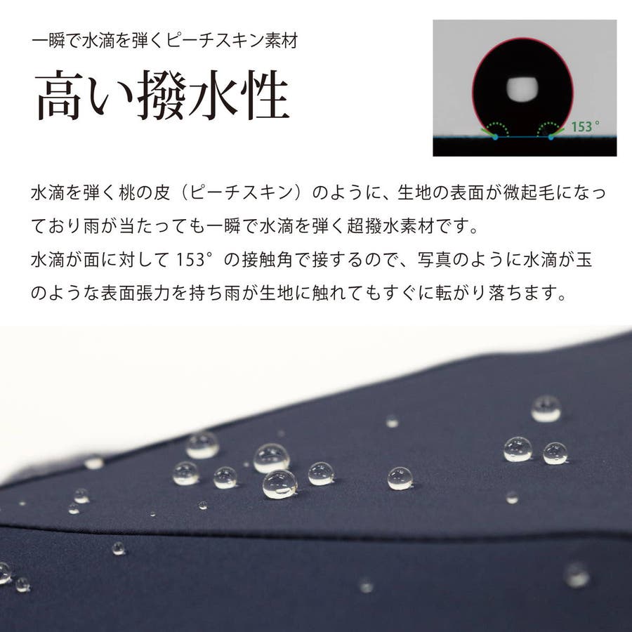 水滴を一瞬で弾き、撥水力の持続性が高い『Peach drop/ピーチ ドロップ』シリーズの耐風仕様の折りたたみ傘。親骨には軽く柔軟性のある丈夫なグラスファイバーに、耐衝撃性と熱や紫外線に強いポリカーボネートを使用。耐風性を備えた特殊な骨構造により、風を受けても反り返ってしなやかに受け流します。またUVカット率が90%以上あるものポイント。手元やストラップをホワイトで統一し、クリーンなイメージを演出します。