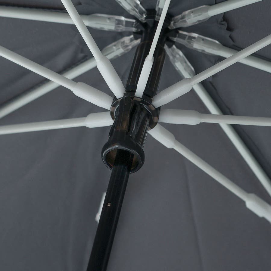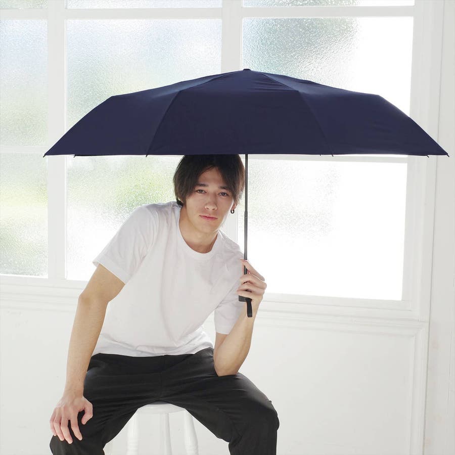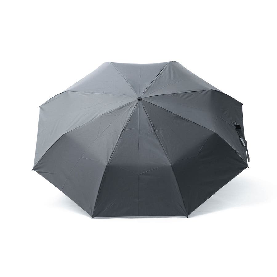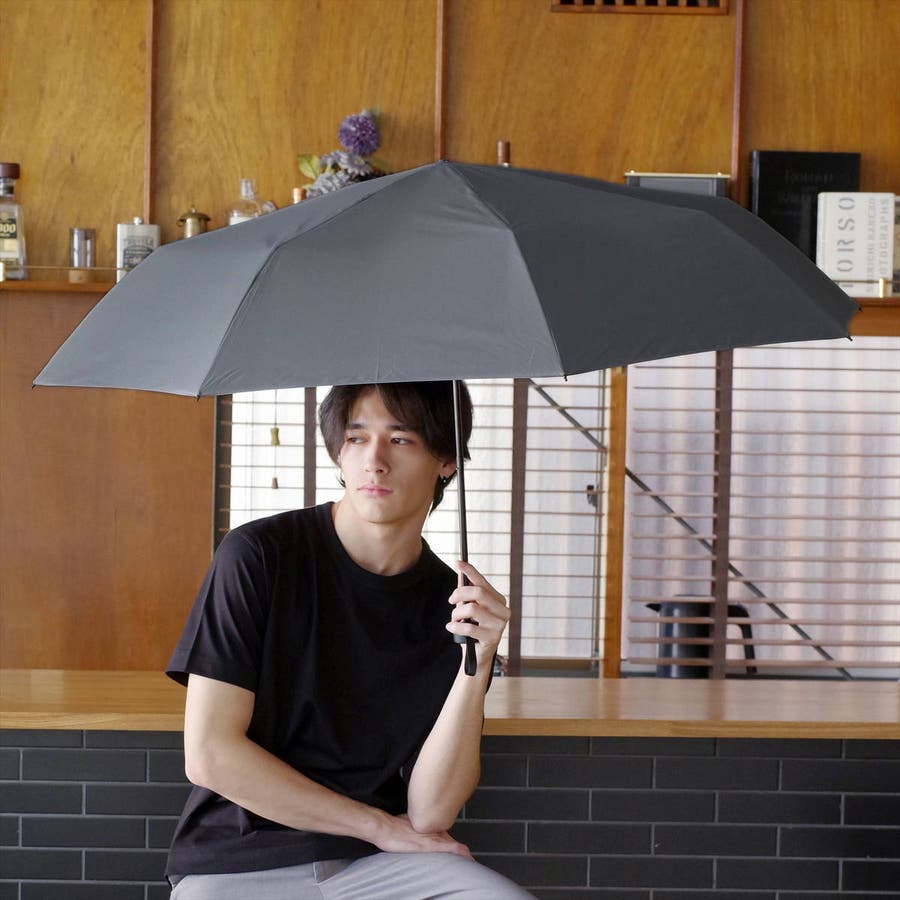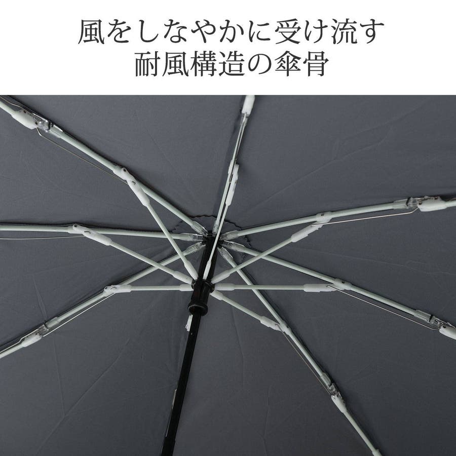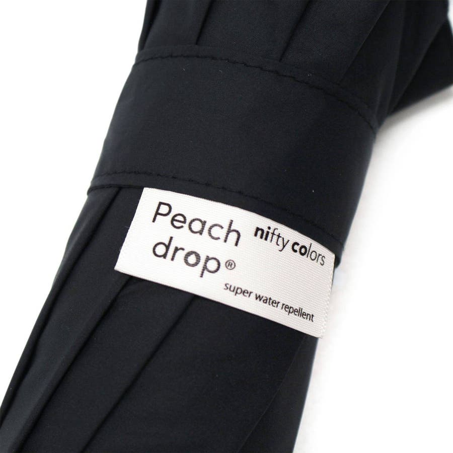 水滴を一瞬で弾き、撥水力の持続性が高い『Peach drop/ピーチ ドロップ』シリーズの耐風性を兼ね備えた折り畳み傘。親骨には柔軟性があり丈夫なグラスファイバーを使用し、風を受けても反り返ってしなやかに受け流します。付属のケースにはファスナーが施され収納しやすく、カラビナが付いているので持ち運びが楽ちん。ダークカラーをベースに、親骨のホワイトのコントラストが効いたデザインでシックな佇まいです。