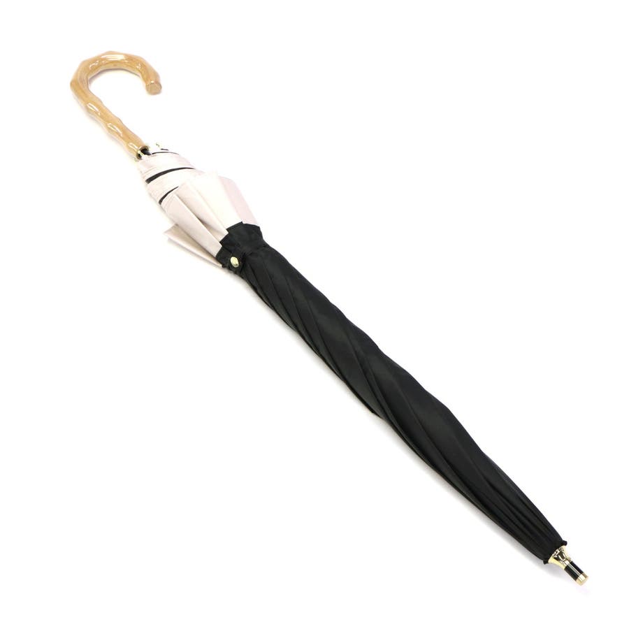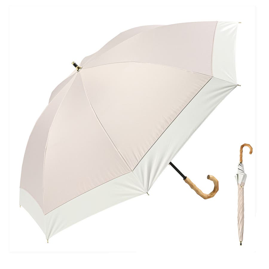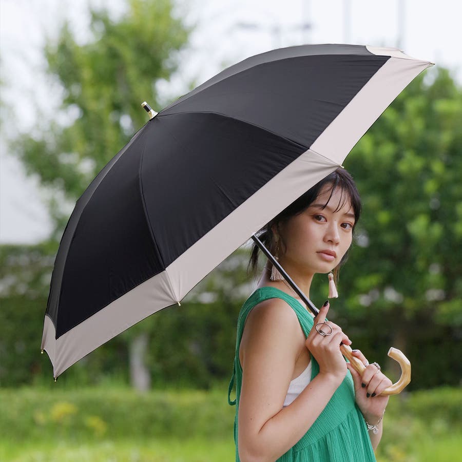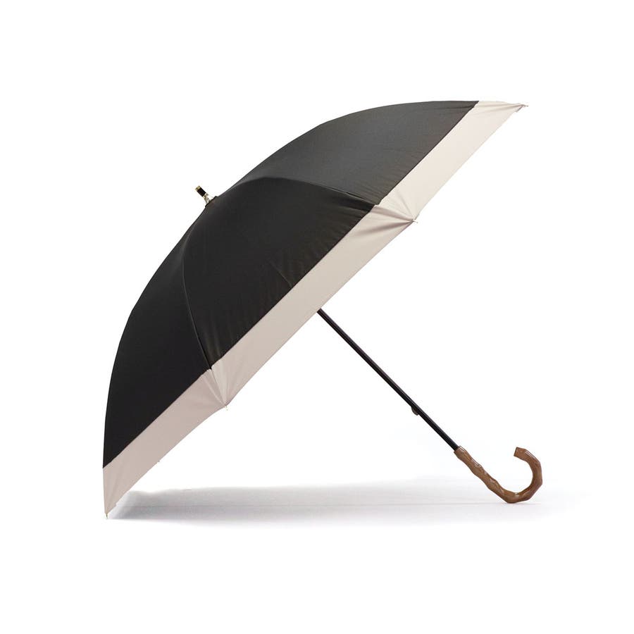 バンブー風のハンドルとバイカラーの配色が上品な長傘です。芯となる中棒や親骨には、しなやかで丈夫なグラスファイバーやアルミを採用し、大きめなサイズながら軽くて丈夫に仕上がっています。防水・撥水効果はもちろん、紫外線遮蔽率・遮光率共に100%なので"晴雨兼用傘"としてオールシーズン使用可能。シンプルな中にも高級感が感じられるアイテムです。
