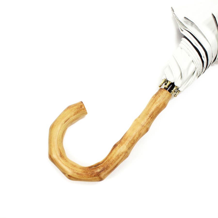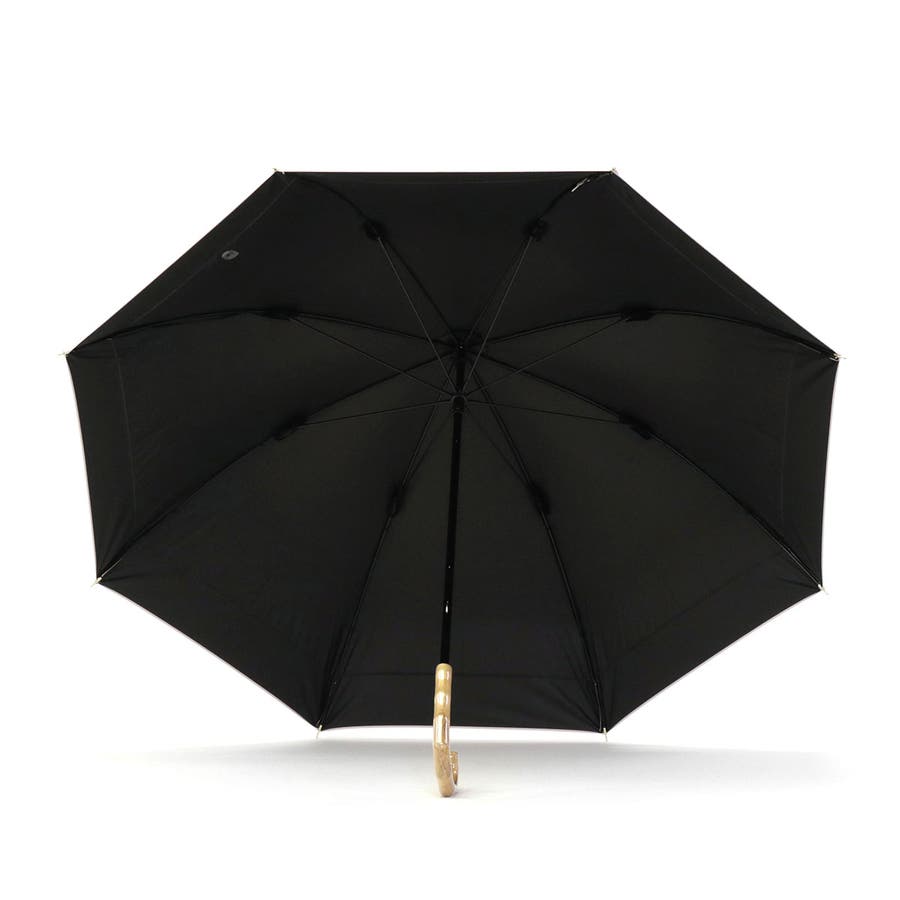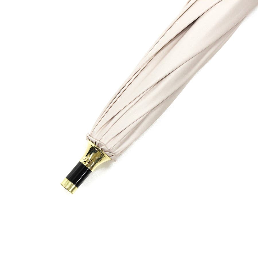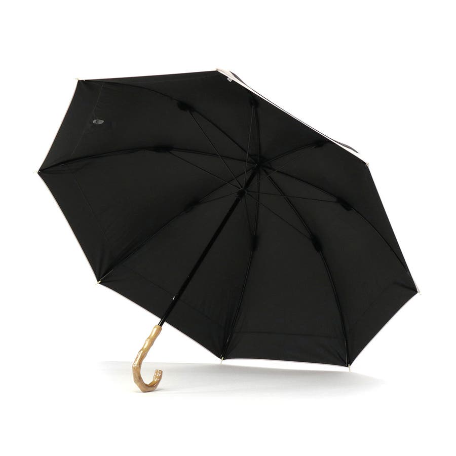 バンブー風のハンドルとバイカラーの配色が上品な長傘です。芯となる中棒や親骨には、しなやかで丈夫なグラスファイバーやアルミを採用し、大きめなサイズながら軽くて丈夫に仕上がっています。防水・撥水効果はもちろん、紫外線遮蔽率・遮光率共に100%なので"晴雨兼用傘"としてオールシーズン使用可能。シンプルな中にも高級感が感じられるアイテムです。