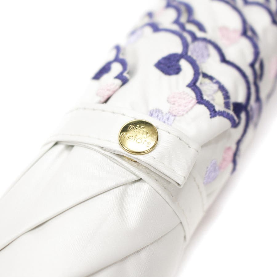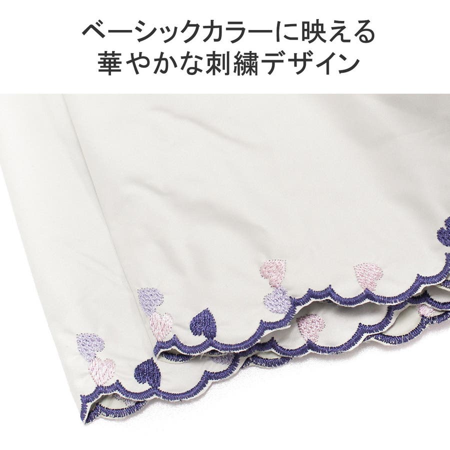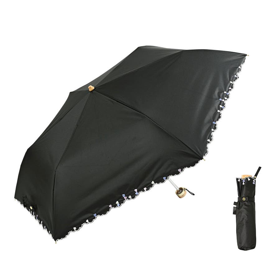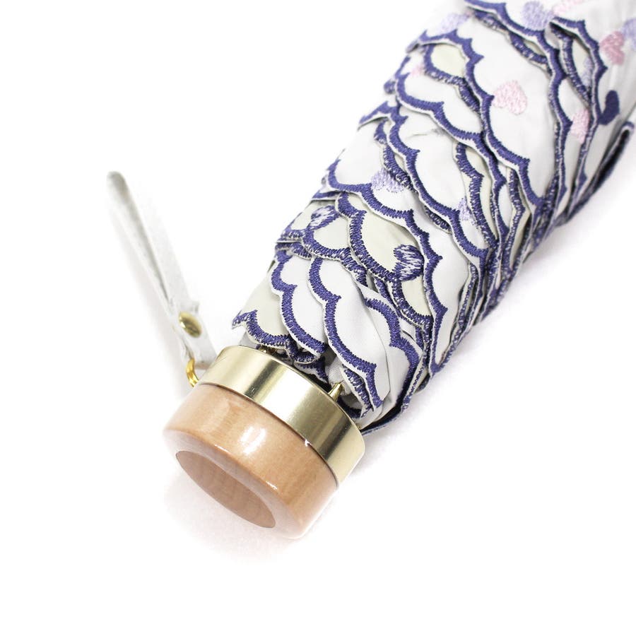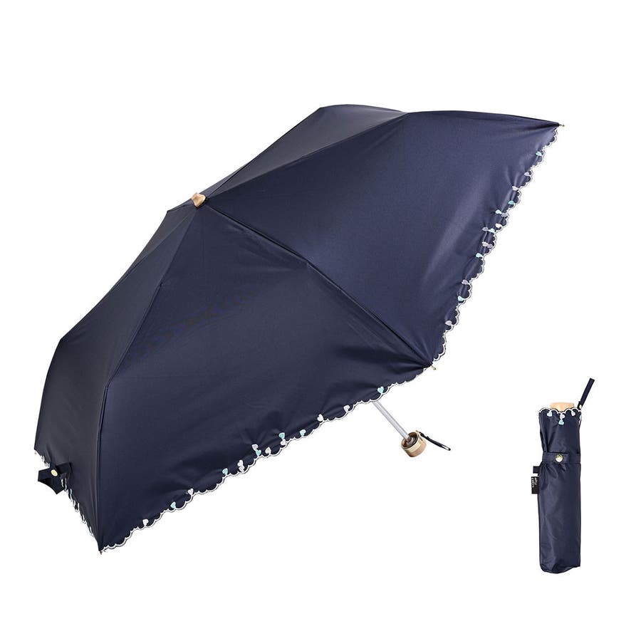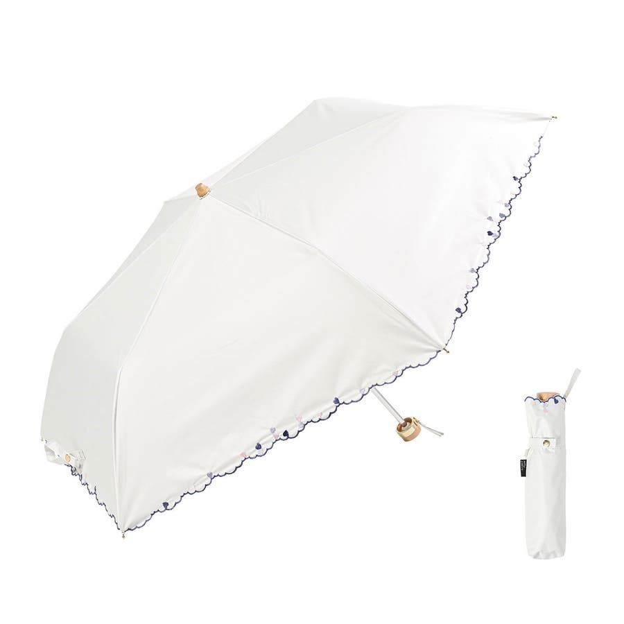 小さなハート刺繍が可愛い折りたたみ晴雨兼用日傘です。シンプルながらも、なみなみの縁取りデザインが華やかさをプラス。紫外線遮蔽率100%、UPF50+、遮光率100%、遮熱性に加え、はっ水・防水効果もあり、耐水圧の検査も20,000mm以上を計測したオールシーズンで使えるアイテムとなっています。