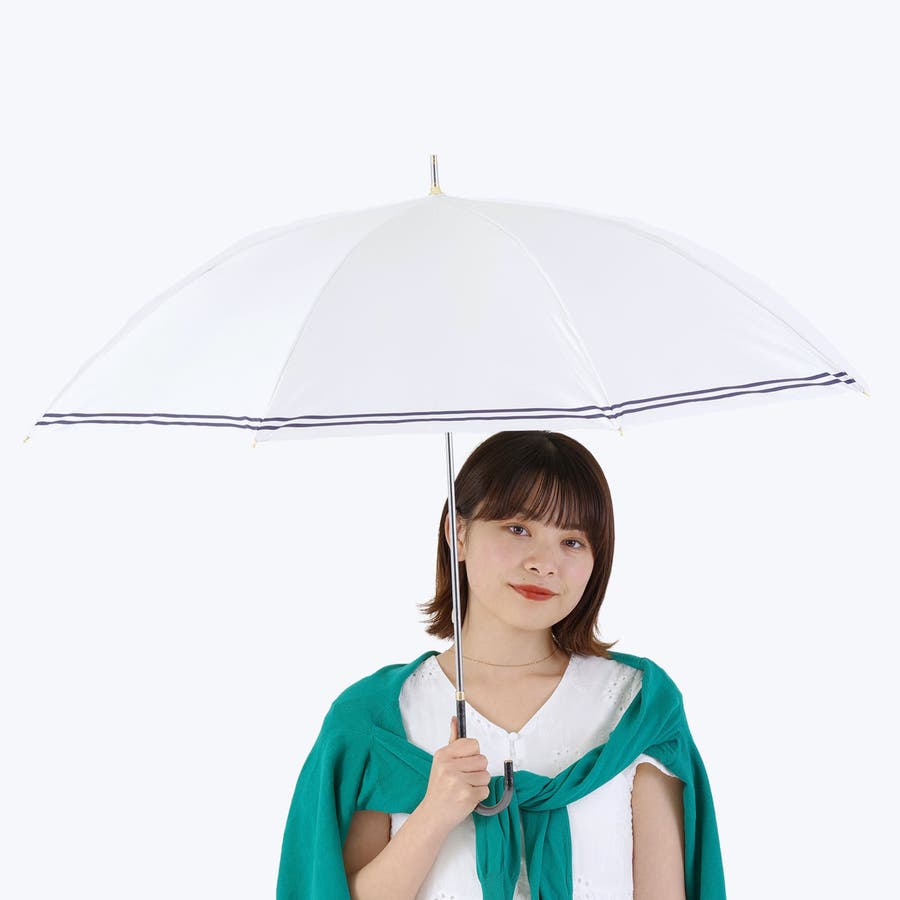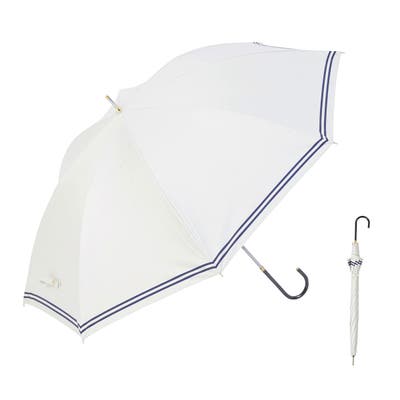 飽きのこないシンプルなボーダーデザインの晴雨兼用日傘。親骨55cmの大きめサイズで、日差しや雨からしっかりガードしてくれます。紫外線遮蔽率100%、UPF50+、遮光率100%、遮熱性に加え、耐水圧も高く防水効果もあるため、オールシーズンお使いいただけるアイテムとなっています。