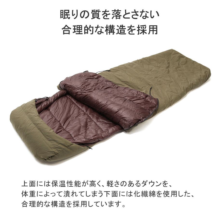 NANGAが提案する、独自の難燃素材“ヒノックリップストップ”生地を使用したシュラフ。この素材に配合されてる“アラミド”繊維は、難燃性だけでなく、摩耗性・耐久性にも優れています。1人用のみ展開しており、形はフード付きの封筒型。キャンプや野外フェスはもちろん、家や車中でも活躍します。
