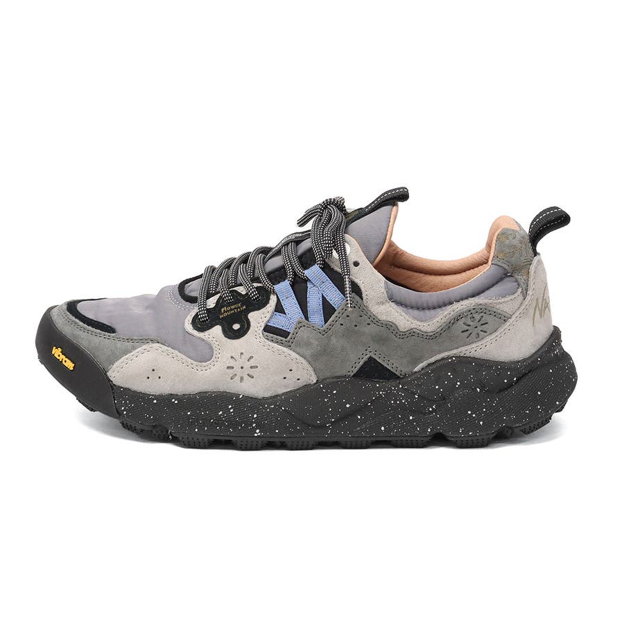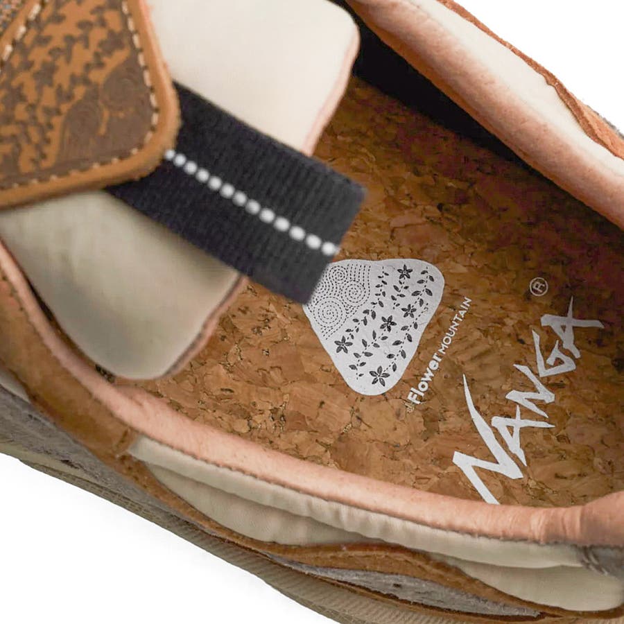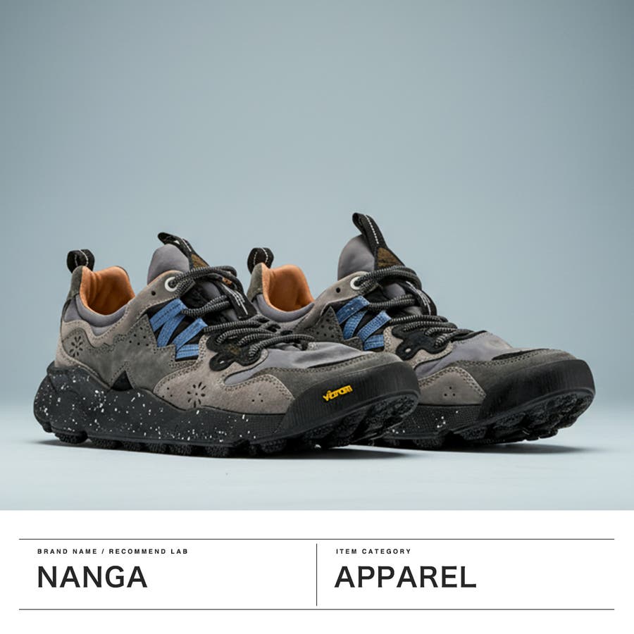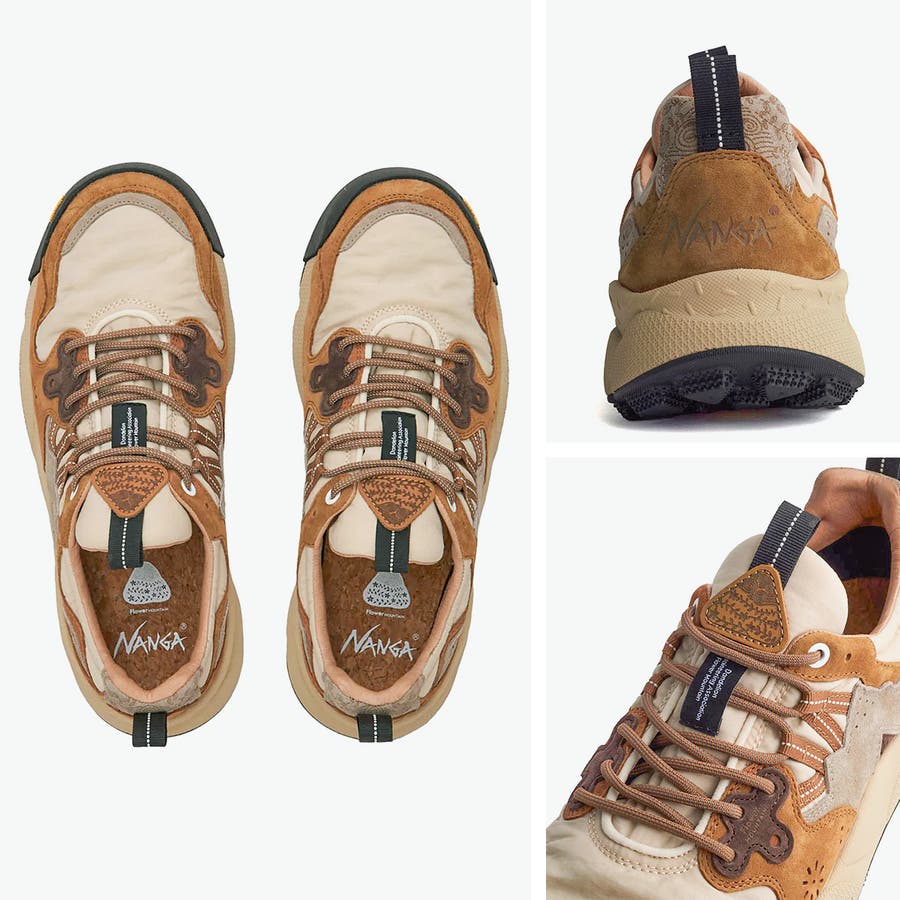 NANGA×FlowerMOUNTAINのコラボデザインスニーカー『YAMANO3』。FlowerMOUNTAINが積み重ねてきたアーバンとアウトドアが融合した世界観をストレートに表現したコラボレーションモデルです。スニーカーの印象を特徴づけるサイドデザインはNANGAのコンセプトである山「ナンガ・パルバット」の稜線を模したデザイン。両ブランドのアイコニックなDNAが1足の中に凝縮された仕上りとなっています。