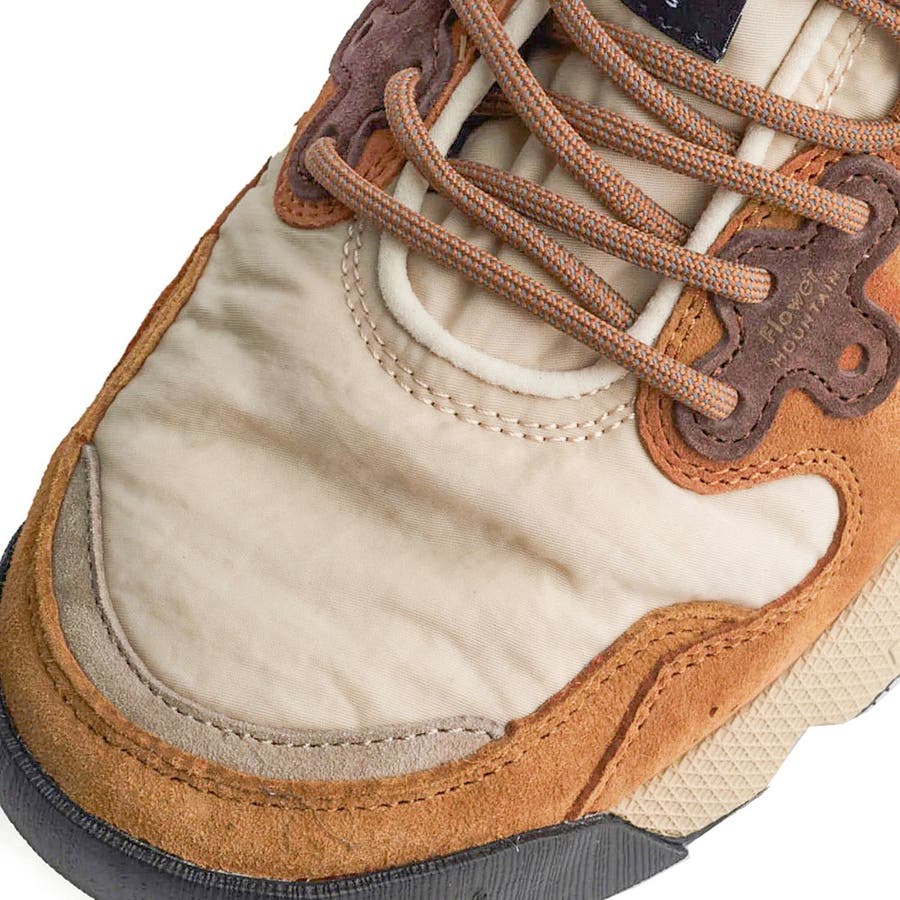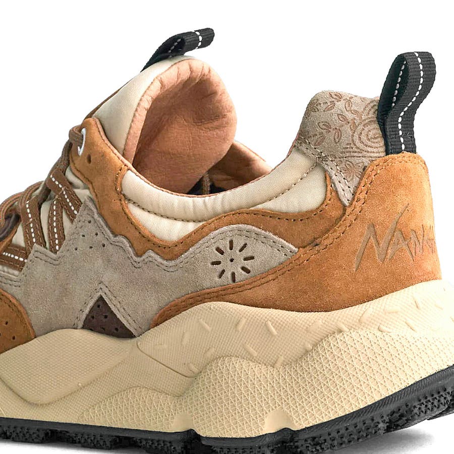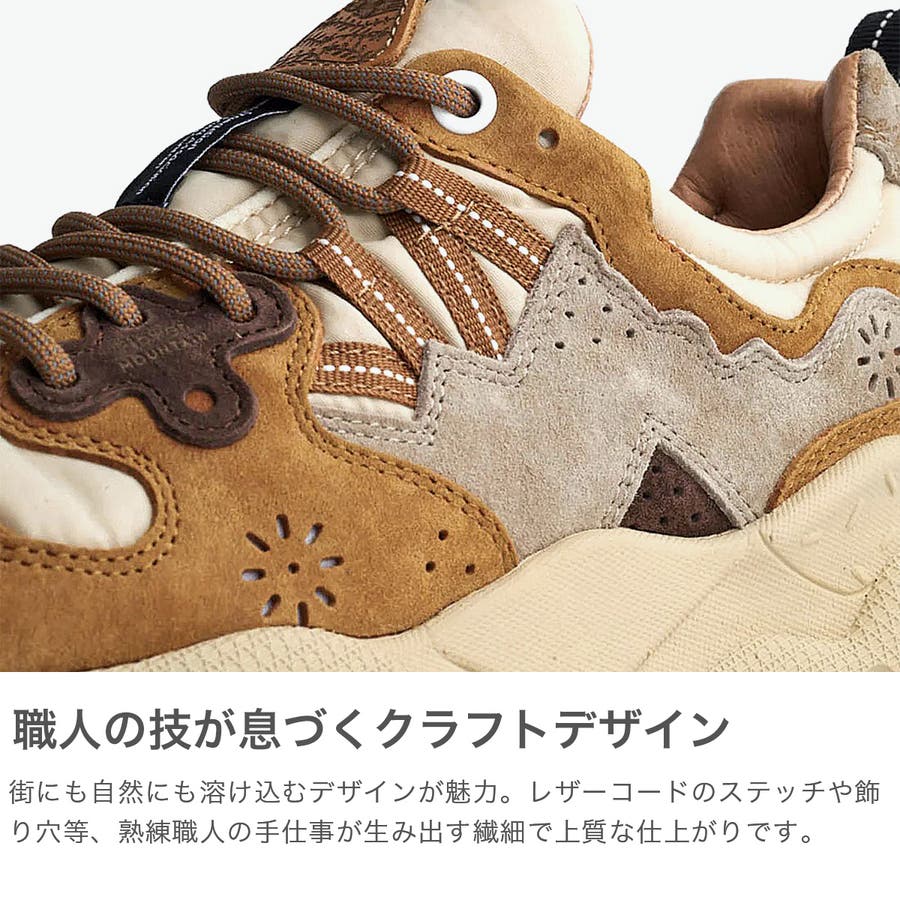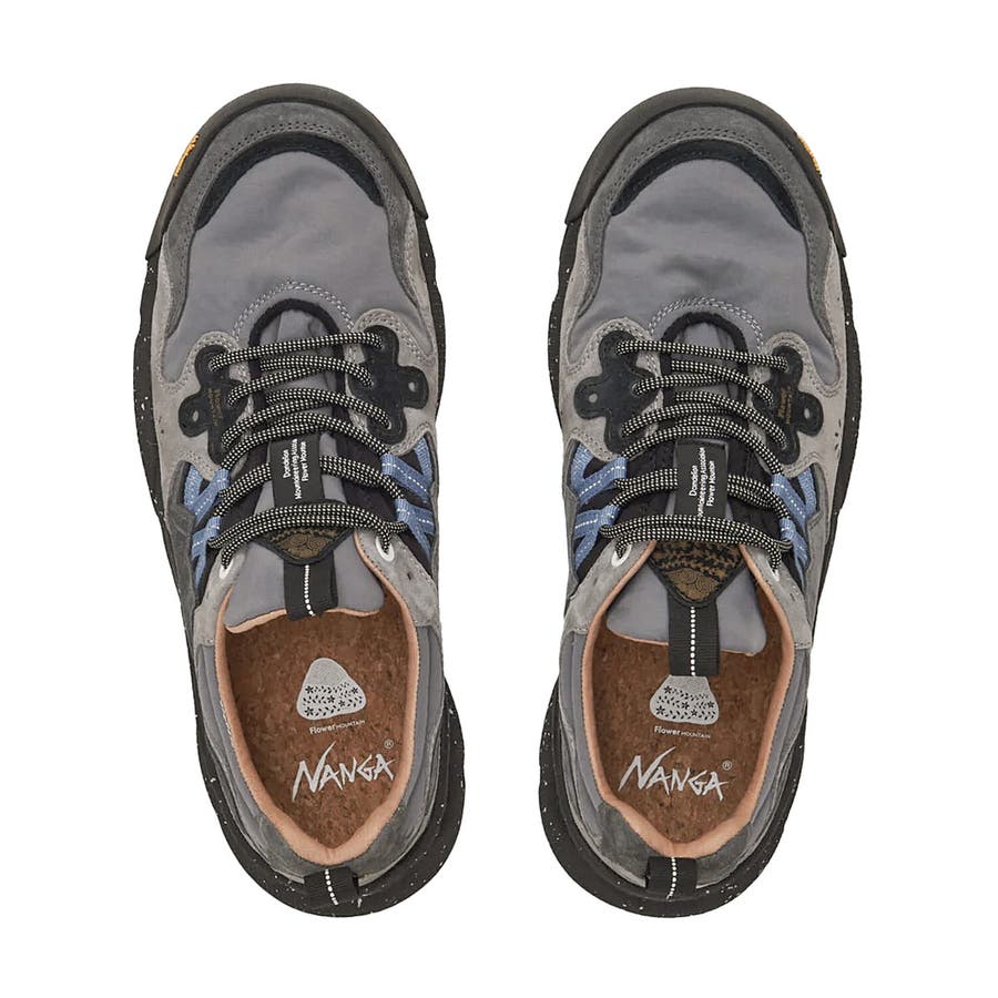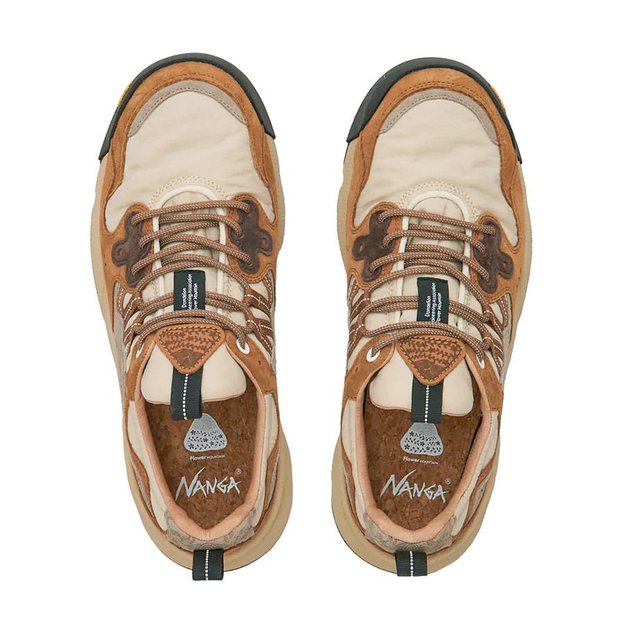 NANGA×FlowerMOUNTAINのコラボデザインスニーカー『YAMANO3』。FlowerMOUNTAINが積み重ねてきたアーバンとアウトドアが融合した世界観をストレートに表現したコラボレーションモデルです。スニーカーの印象を特徴づけるサイドデザインはNANGAのコンセプトである山「ナンガ・パルバット」の稜線を模したデザイン。両ブランドのアイコニックなDNAが1足の中に凝縮された仕上りとなっています。