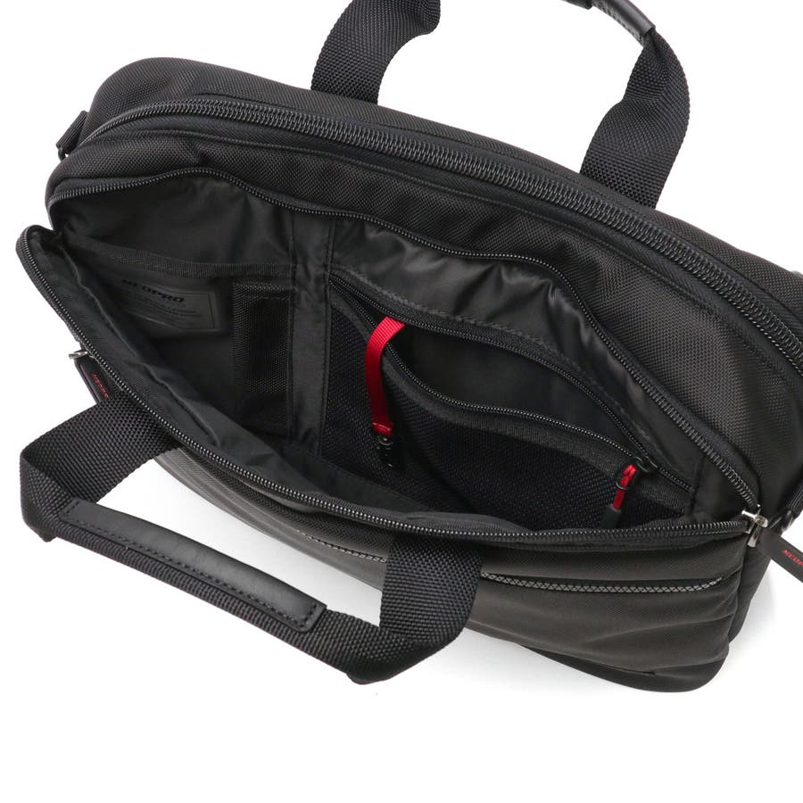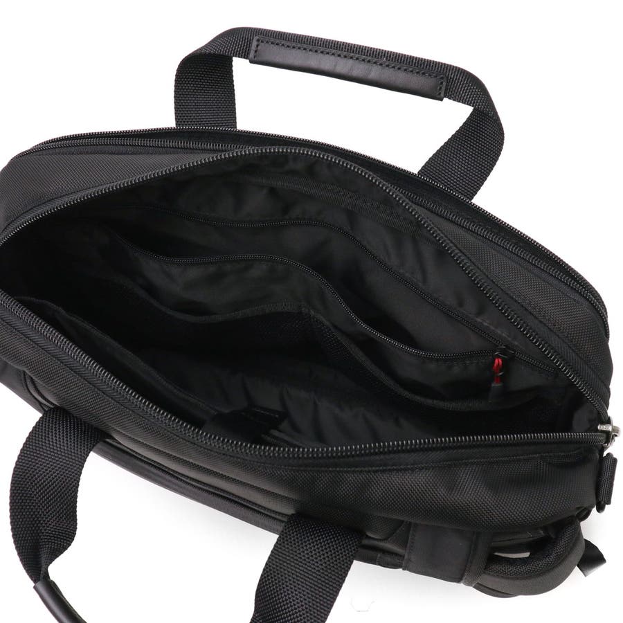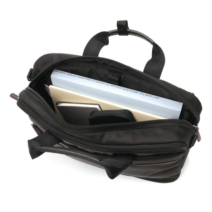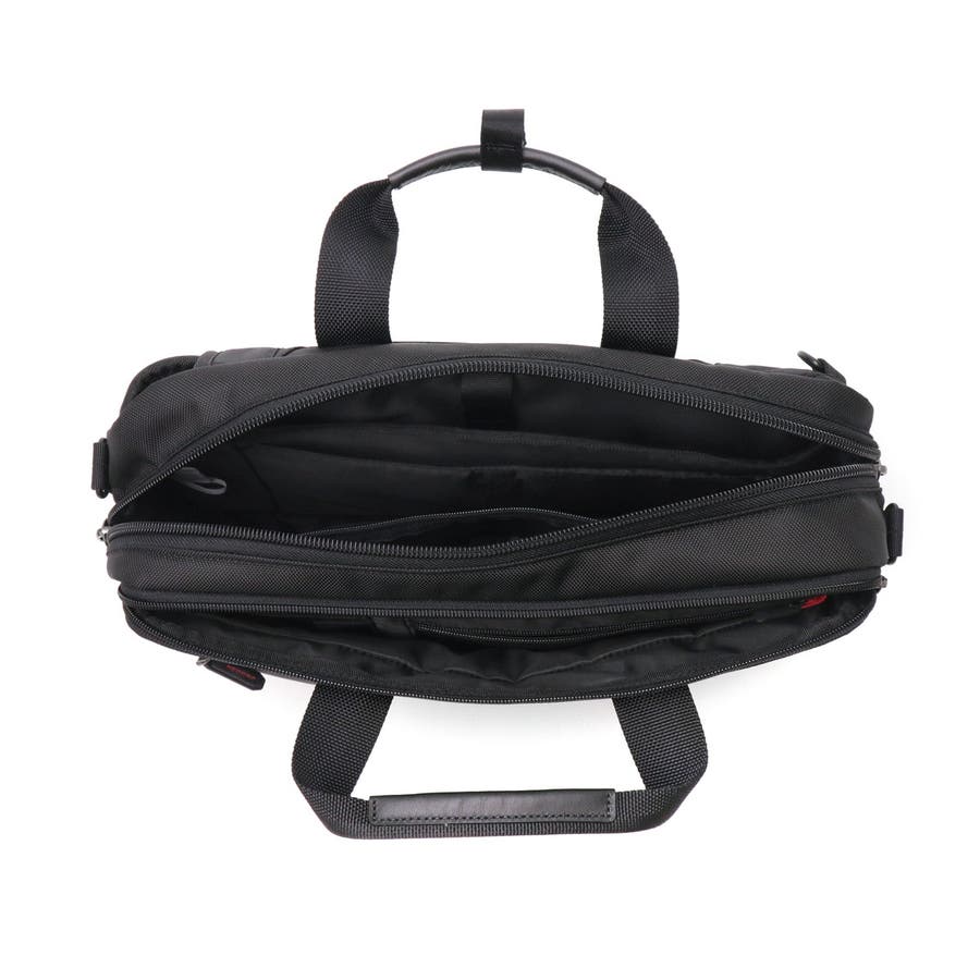 サイズの異なる2つのデバイス収納を設けたB4サイズ対応の大きめなつくりのメインルーム。その他にも、ポケットを多数配置することでビジネスアイテムの仕分けもスムーズに。付属のショルダーストラップや、格納式のリュックストラップを装着すれ3WAYで使用可能なので、シーンに合わせて使い分けることができます。また、底面には汚れが拭き取り易いコーティング素材を使用し、ファスナー付け根を隠したデザインが特徴的なスライダートンネルを採用した前面ポケットなど充実のディテール。ベーシックなデザインながら、ビジネスバッグの究極とも言える仕上がりを実現しました。