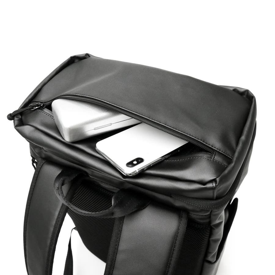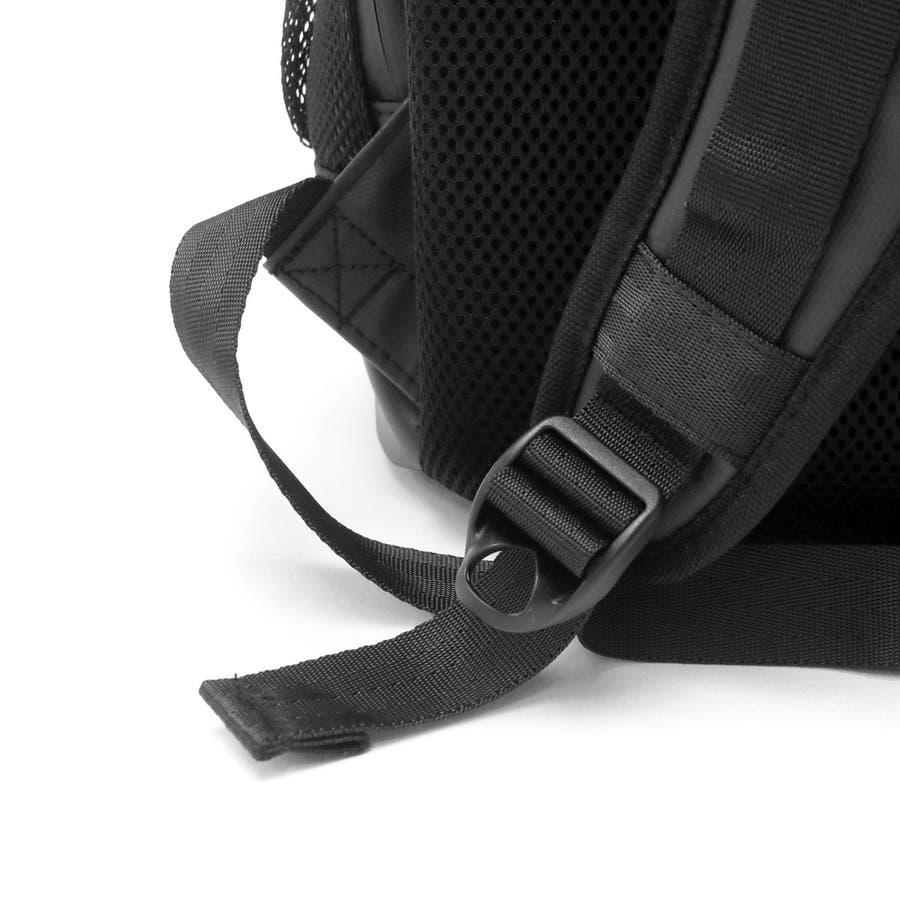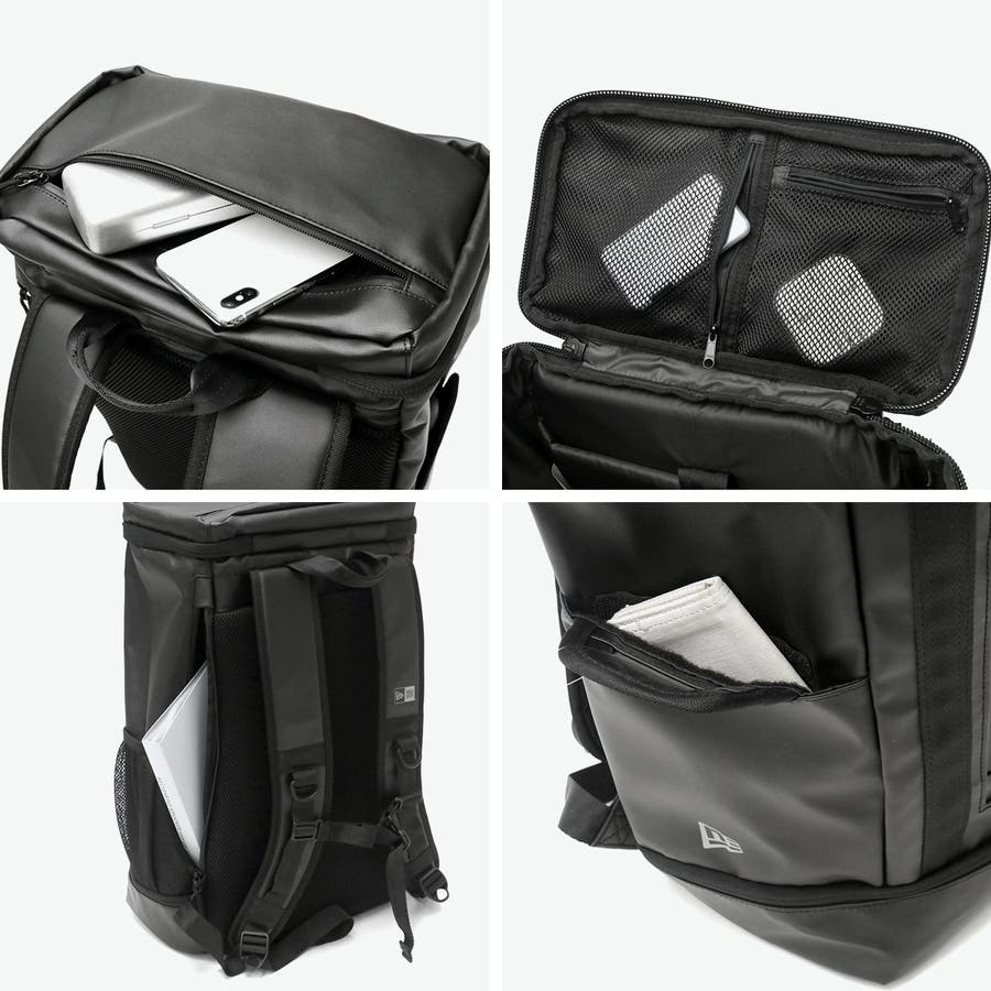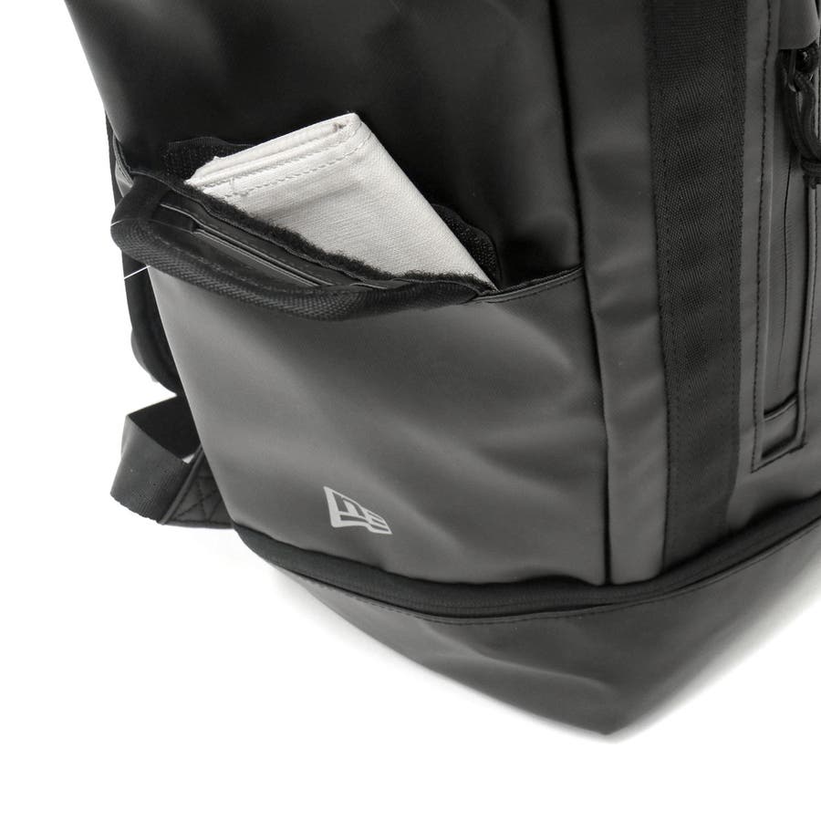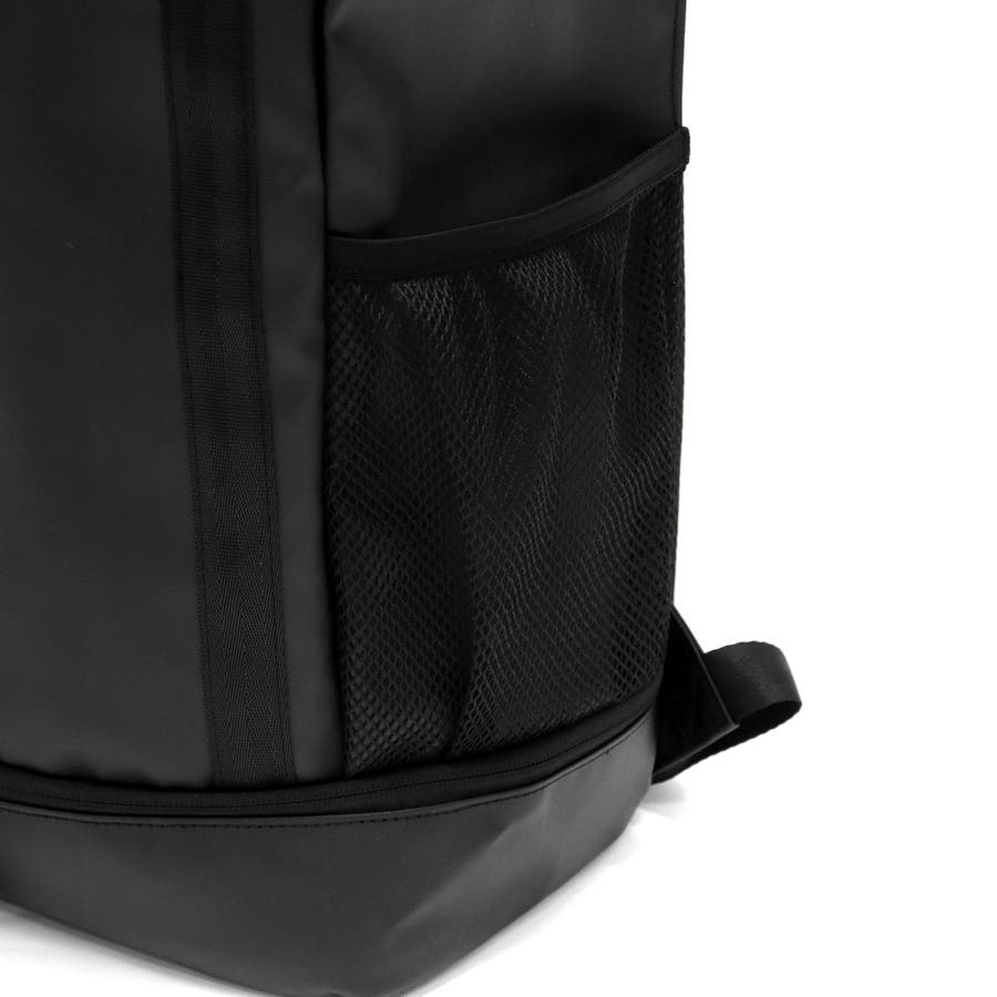 ボックス型のシルエットが特徴的な、大容量バックパック。本体素材には、滑らかな光沢感と耐候性が特徴の“TPU加工"を施しています。また外側には大きさの異なるポケットを複数装備。他にも、PC収納やシューズ収納を搭載し、タウンユースから通勤・通学まで幅広いシーンで活躍するアイテムに仕上がっています。