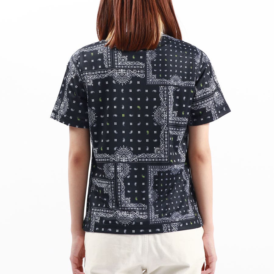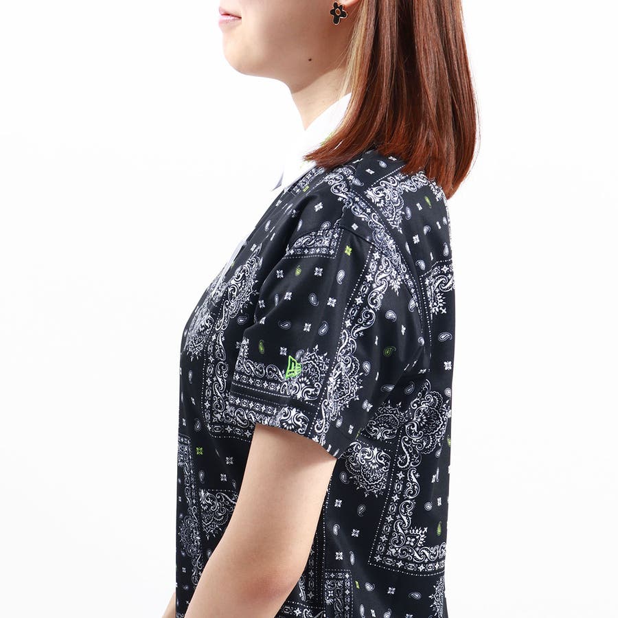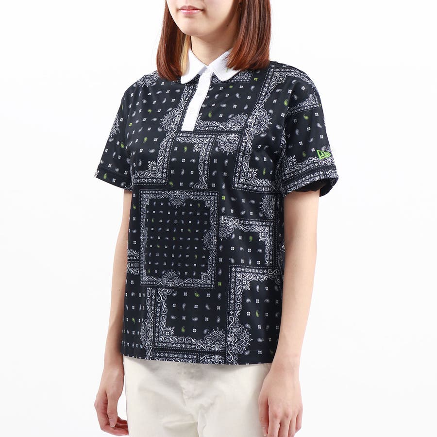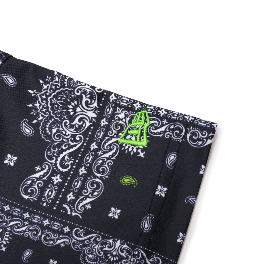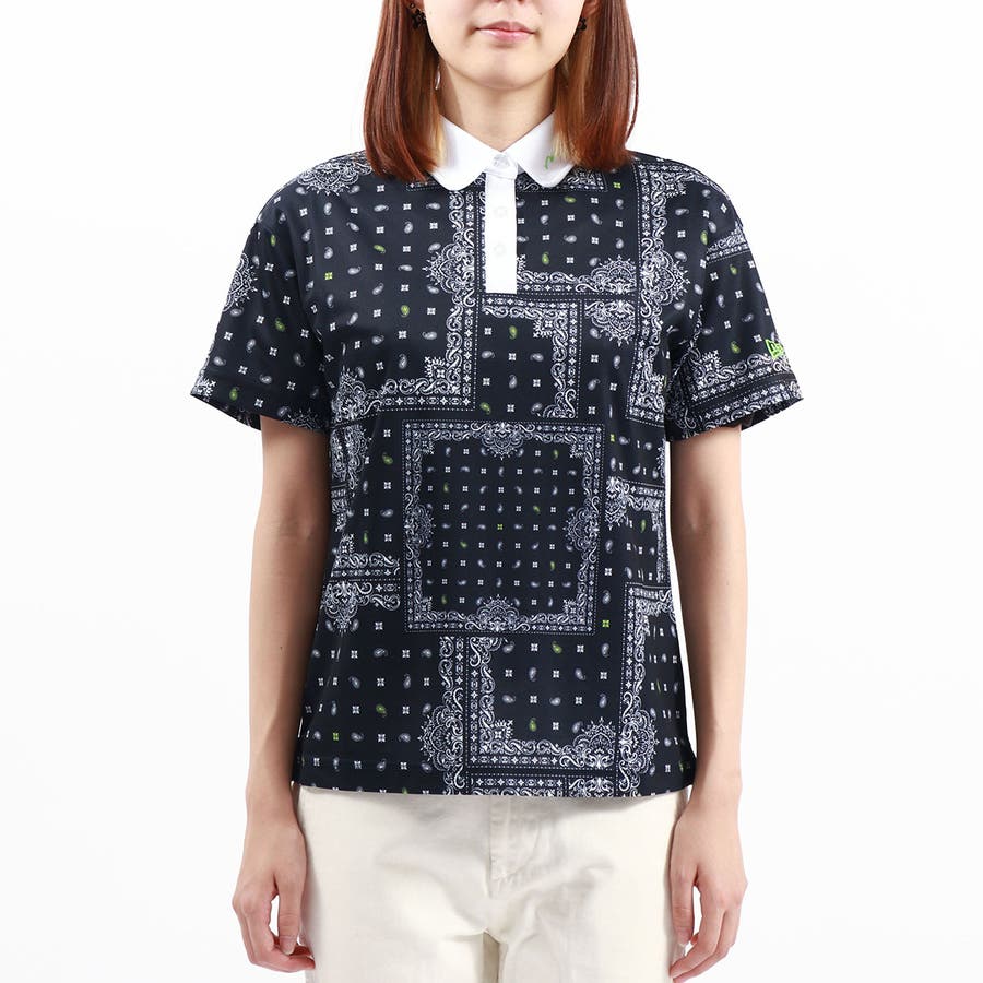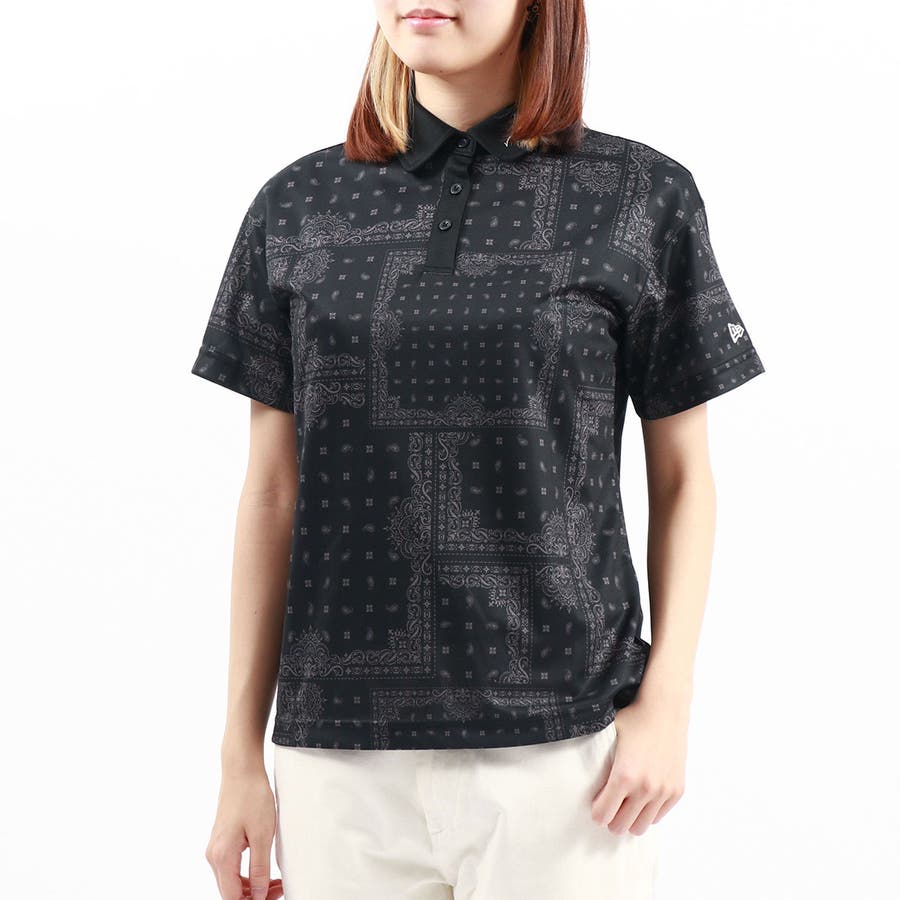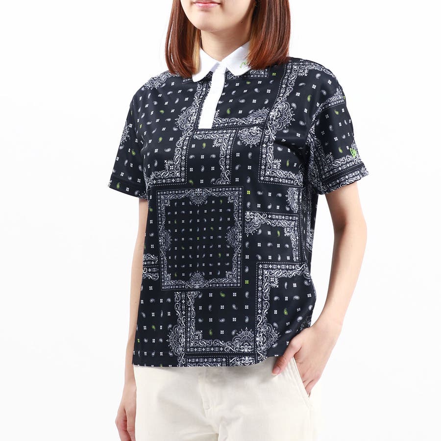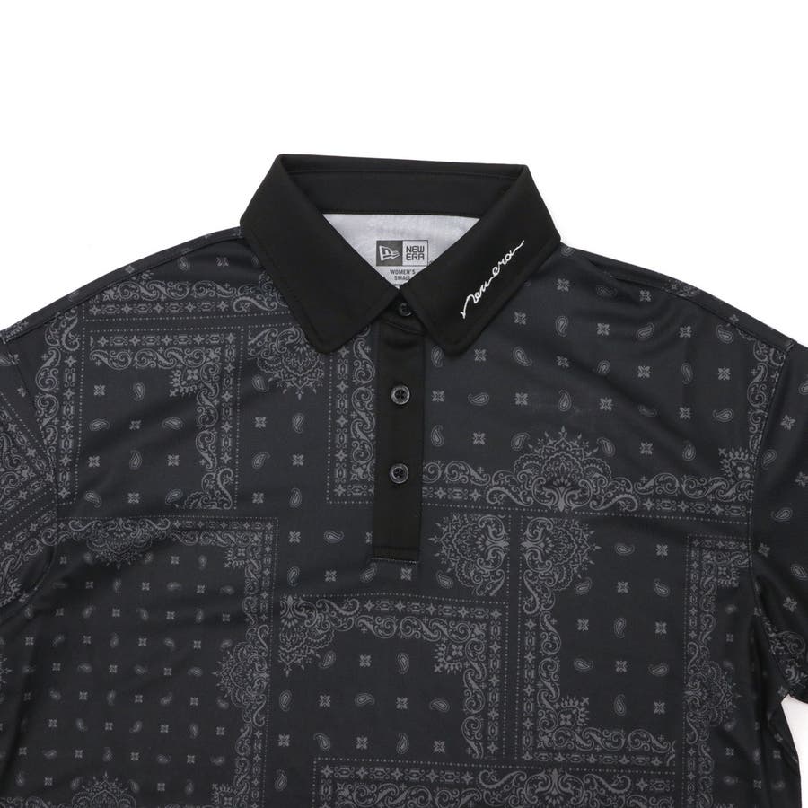 バンダナ柄を重ねたコラージュが目を引く半袖ポロシャツ。襟と袖のロゴ刺繍がデザインのアクセントになっており、ベーシックなボトムに合わせるだけでコーディネートを華やかに仕上げます。素材には、吸汗速乾機能に加え、紫外線カット・抗菌効果を備えた通気性の高い鹿の子編み生地を採用。暑い時期のラウンドも快適にプレイできるアイテムです。