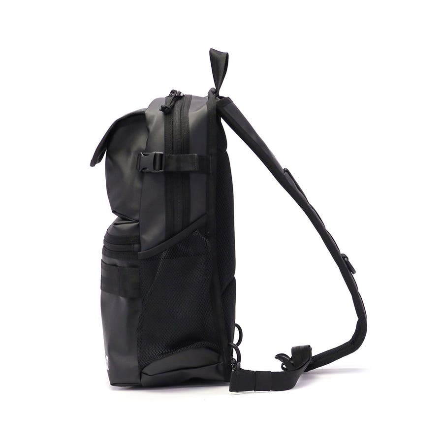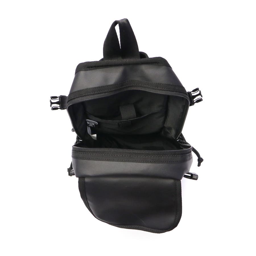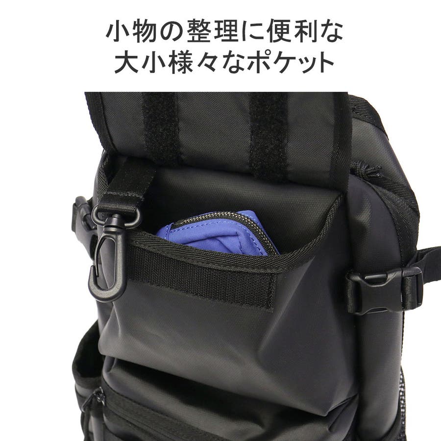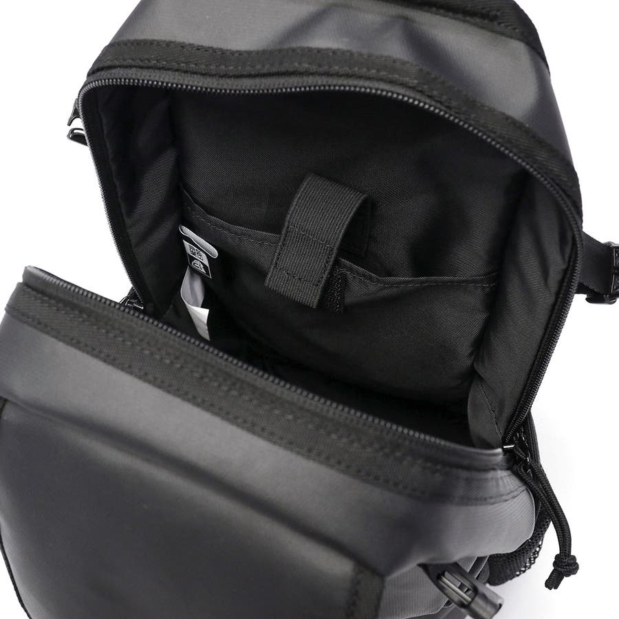 オールブラックで統一感のある縦型ボディバッグです。厚手のポリエステル生地にTPU加工を施すことで、滑らかな光沢感と耐候性を実現。多彩なポケットやショルダーストラップの仕様など、使いやすさを高める機能へのこだわりが随所に感じられるアイテムです。