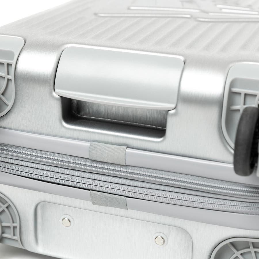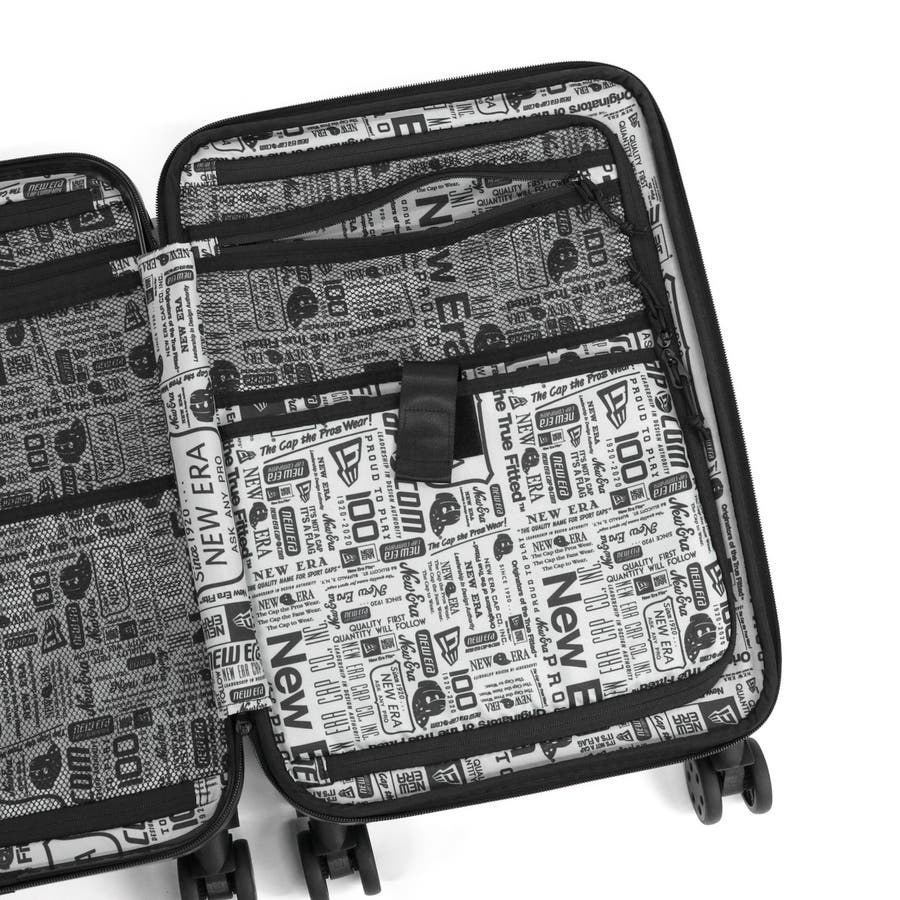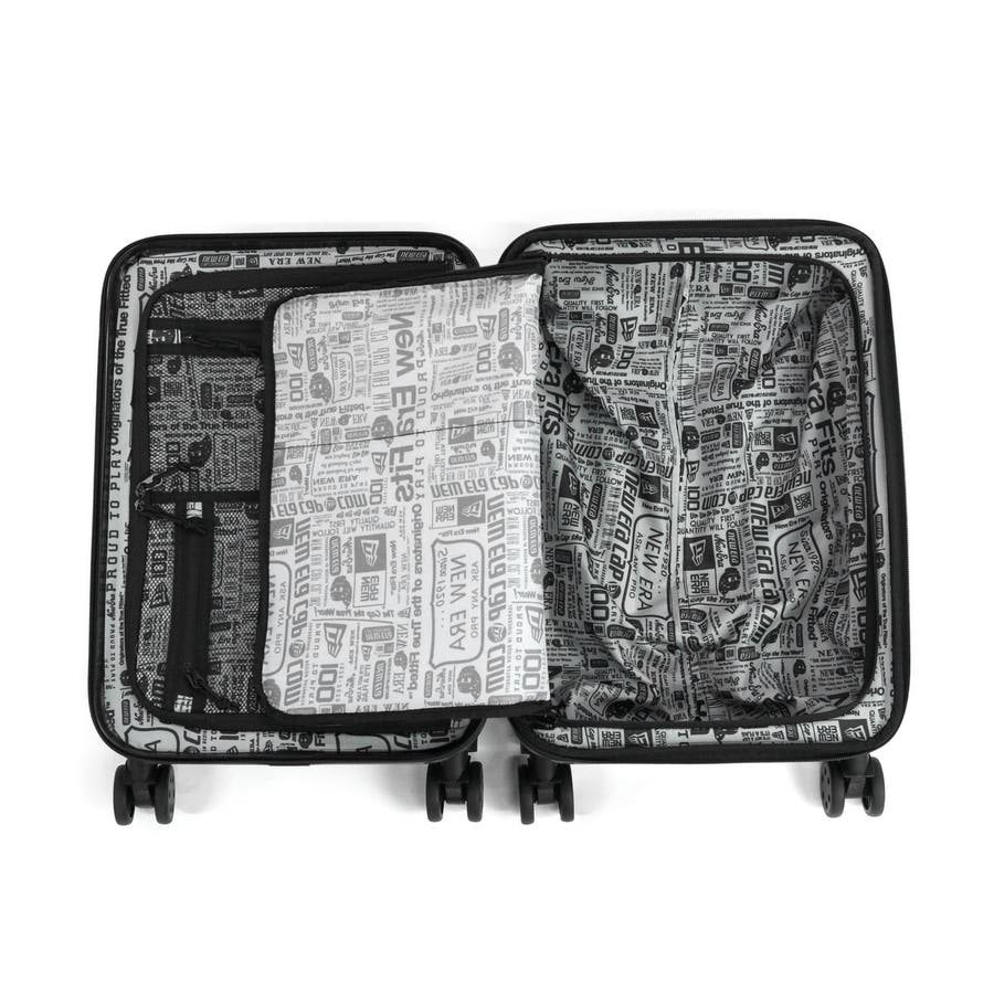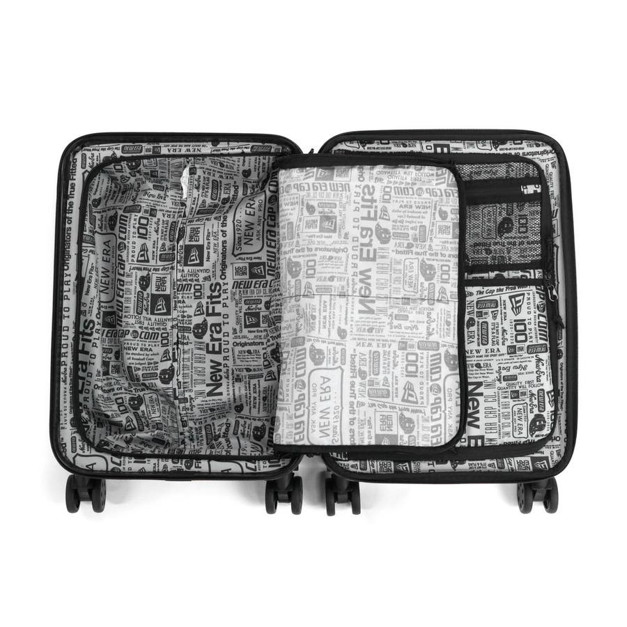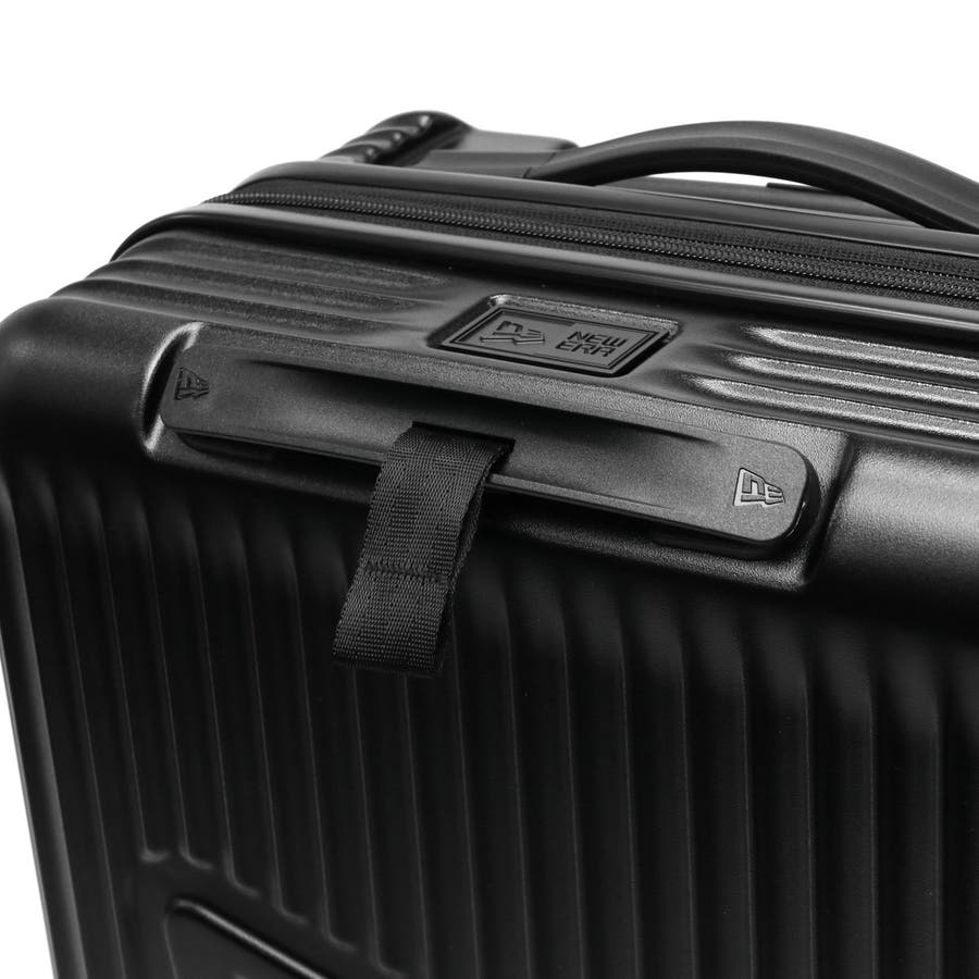 New Era Flagロゴがエンボスで入るオリジナルボディーを採用したキャリーケース。こちらは1~2泊程度の旅行に最適で、機内持ち込みも可能なモデルです。容量は、エキスパンダブル機能付きのため約33Lから38Lまで拡張することが可能になっています。また、本体にはキャリーバー以外に、上部、側面、底面にハンドルを装備し持ち運びがしやすい設計に。便利なキャスターストッパーが付いているのもポイントです。