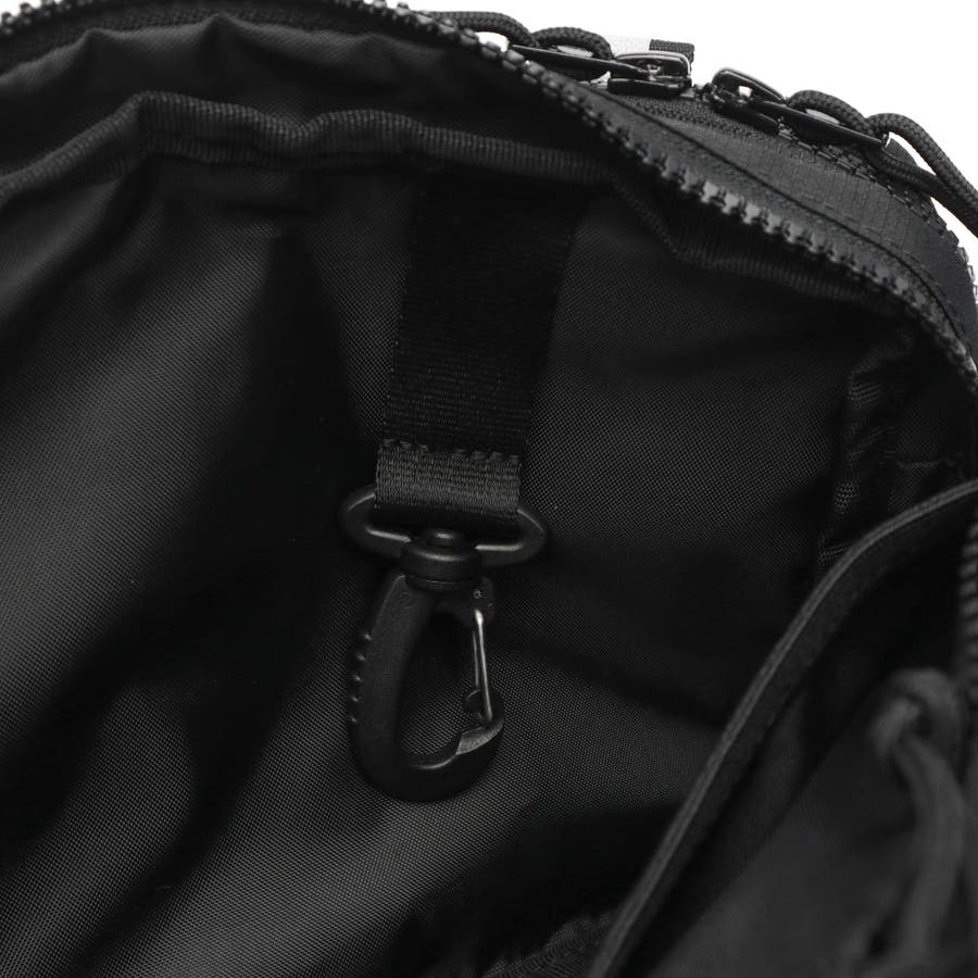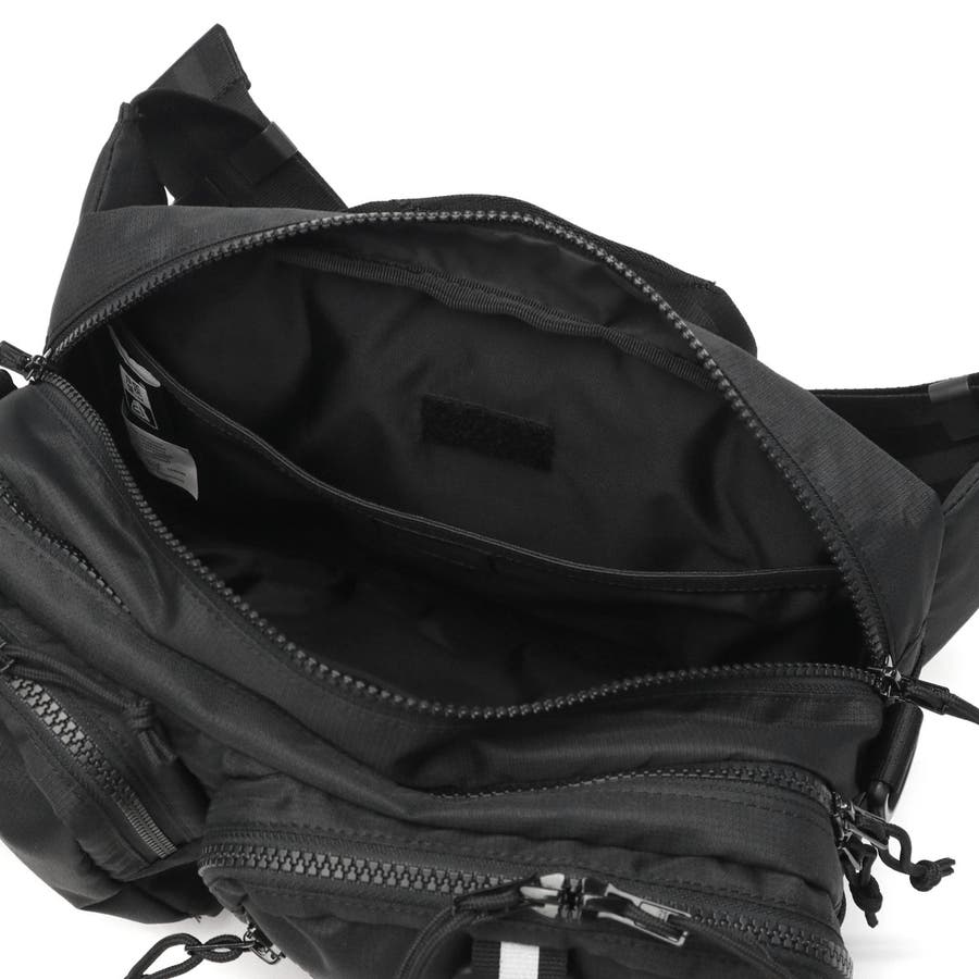 ボックス型シルエットが特徴的な“スクエアウエストバッグ”をアップデートした『フィールドウエストバッグ』。小物の収納に特化したディテールを追加し、タウンユースからアウトドアまで幅広く対応。取り外し可能なショルダーストラップを追加して汎用性を高めています。黒のシンプルなルックスに、ブランドロゴが映えるデザインです。