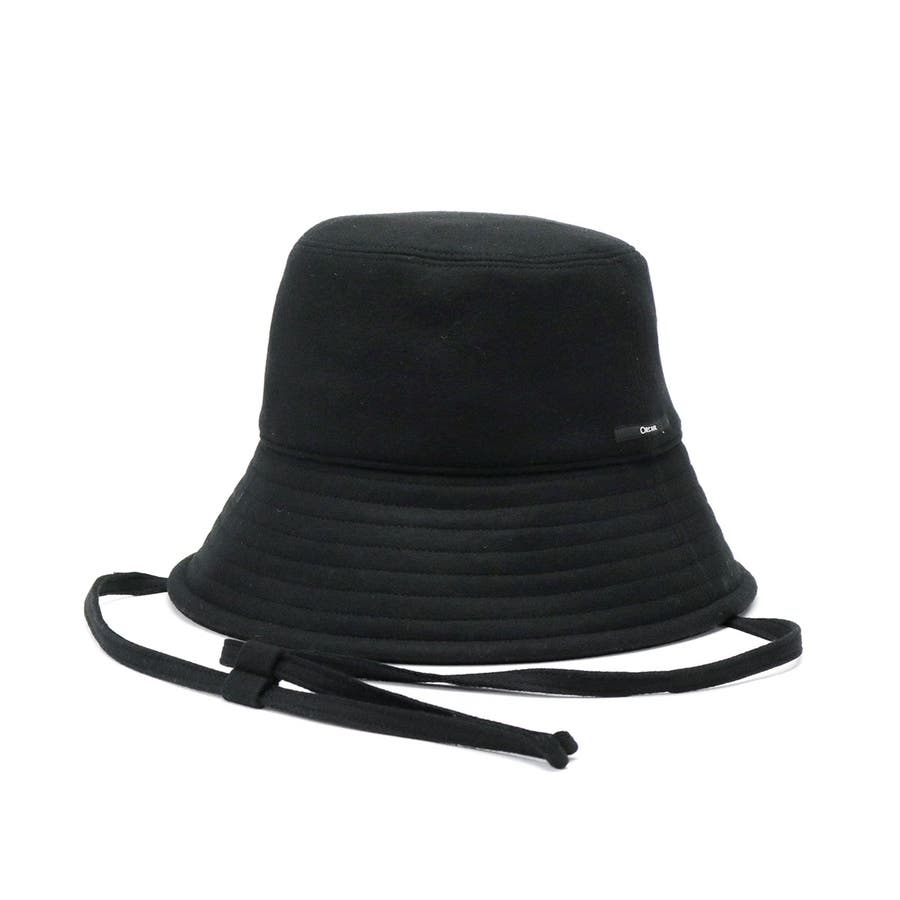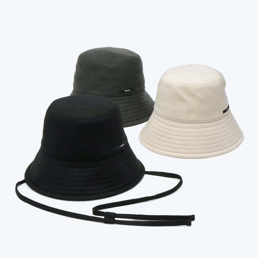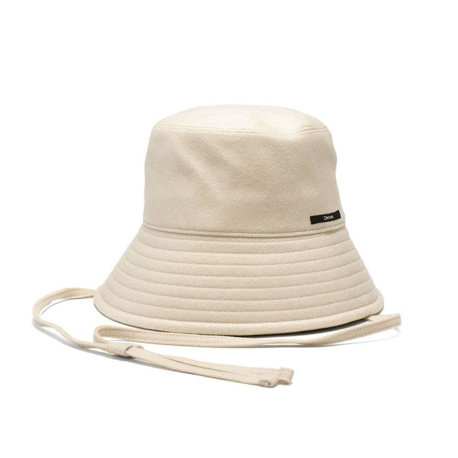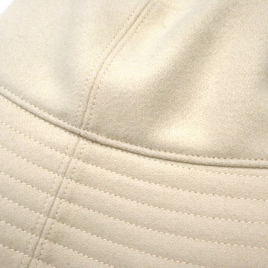 原料本来の膨らみと柔らかさにこだわった、100%ウールのバケットハット。カジュアルからフェミニンまで幅広い服装にマッチするデザインに仕上がっています。深めに被ることができるサイズ感と、サッと身に着けられる軽さもポイントです。また取り外し可能な紐ストラップは、コーディネートのアクセントにもなりつつ、帽子を風飛びから守る役割を果たしてくれます。
