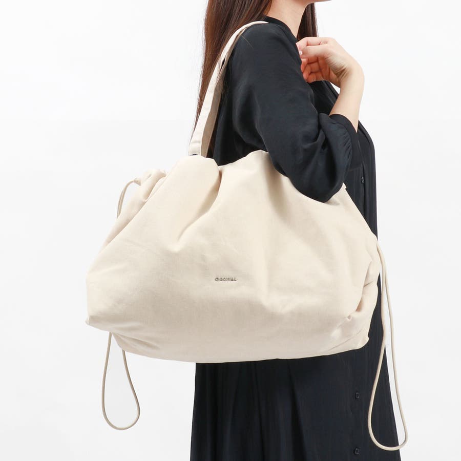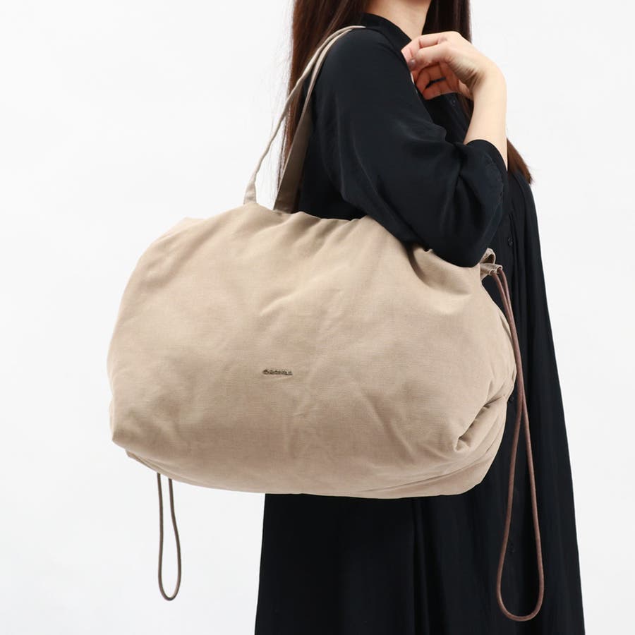 脇の三角マチが特徴のヨコ型ギャザートートバッグです。ハリとコシのあるコットンオックスに微起毛加工を施した素材に、薄い中綿を全面に入れており柔らかい雰囲気を演出します。天口開閉は合皮のコードによるギャザー仕様。共布のハンドルは長めの設計で、肩にもかけやすい長さです。使いやすいサイズ感とディティールでデイリーにぴったりのアイテムです。