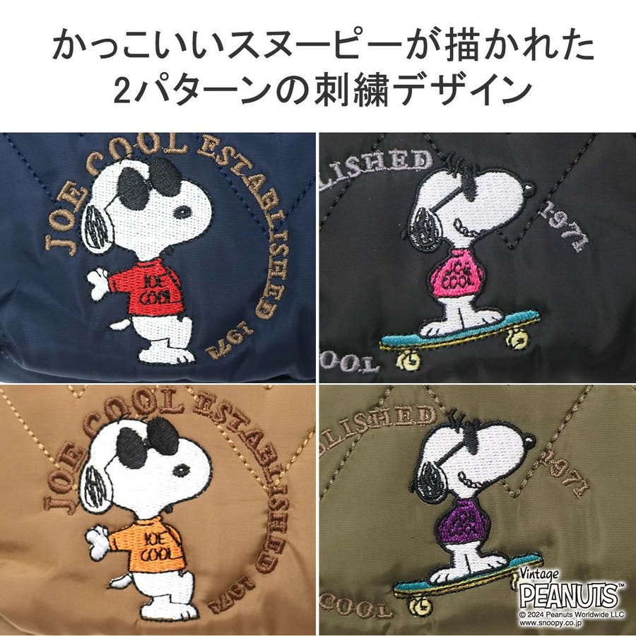 | カッコよさと可愛さを 兼ね備えたSNOOPYバッグ スヌーピーがサングラスをかけ、クールな大学生に変身した人気のキャラクター「JOE COOL」が描かれたショルダーバッグ。コンパクトながら見た目以上の収納力を備え、内外にはポケットが充実し使い勝手も抜群です。デザインは、カッコよくポーズを決めるカレッジスタイルと、スケートボードを颯爽と滑るスケボースタイルの2種類。どちらもクールでボーダーレスな大人スタイルに仕上がっています。 |