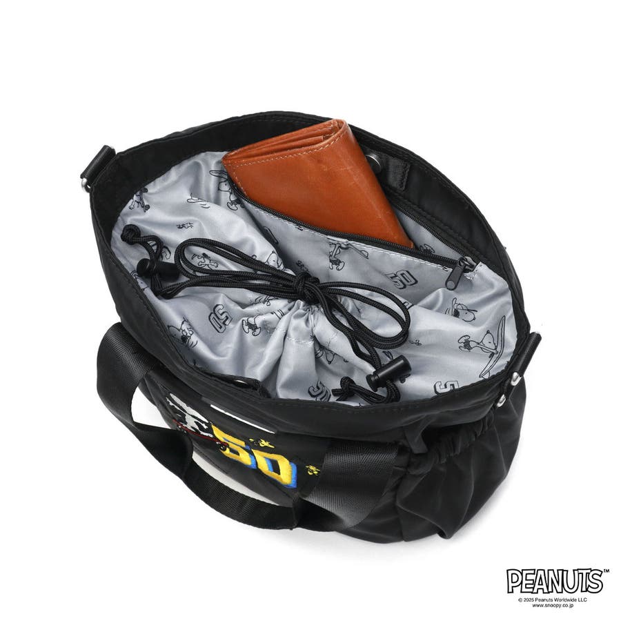 PEANUTSコレクションのスヌーピー刺繍がかわいい、2WAYトートバッグM。A5サイズ対応&8.6Lのコンパクト設計で、ちょっとしたお出かけにぴったり。軽量設計で肩掛け・斜めがけも快適。巾着仕様で中身が見えにくく安心。ユニセックスなデザインで、普段使いからレジャーまで幅広く活躍します。
