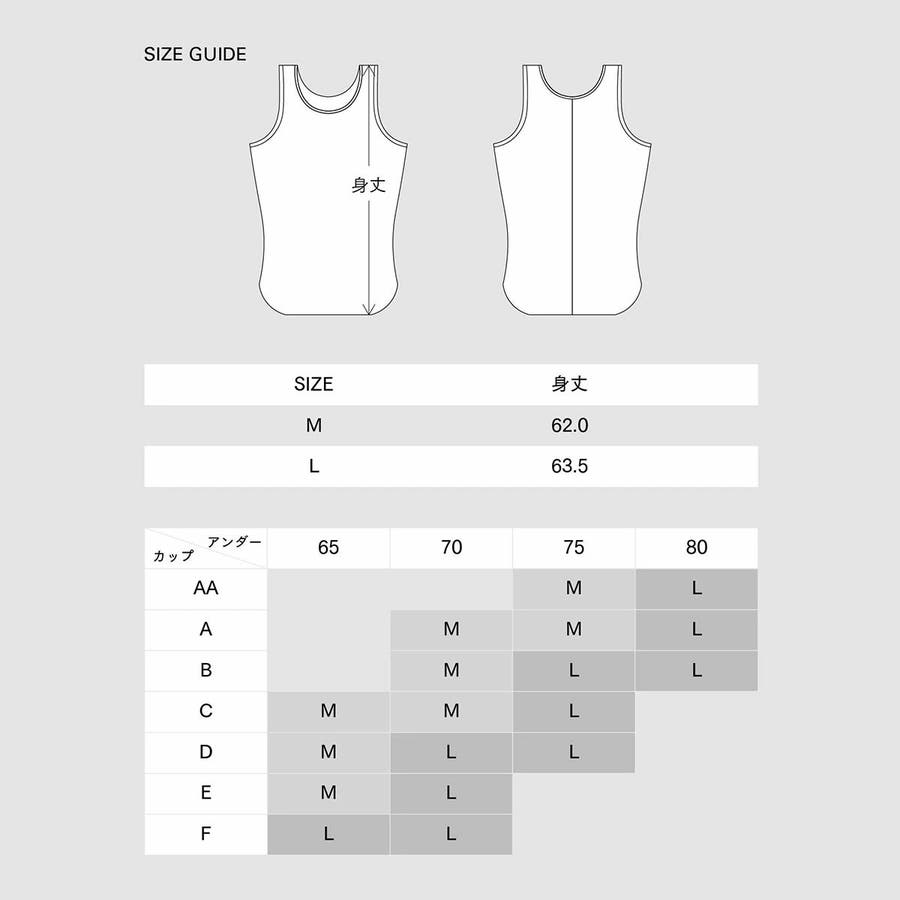 | サイズ | M バスト 約 79~87|身丈 約 62(cm) L バスト 約 86~94|身丈 約 63.5(cm) ※サイズはメーカー計測サイズとなります。 商品により、若干の個体差が生じます。 |