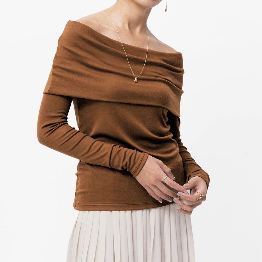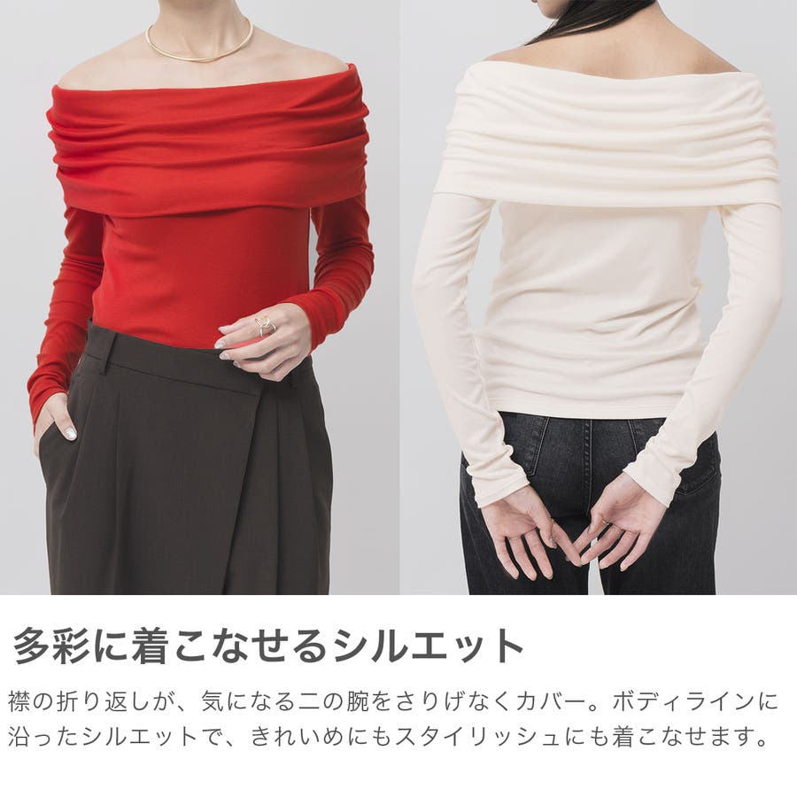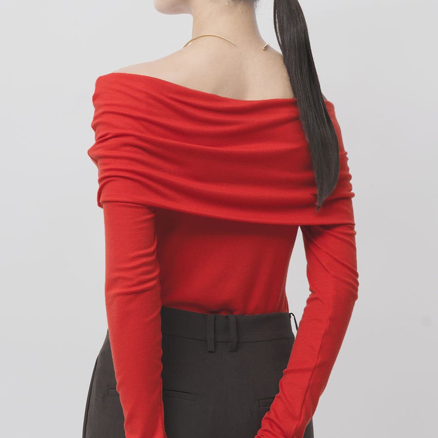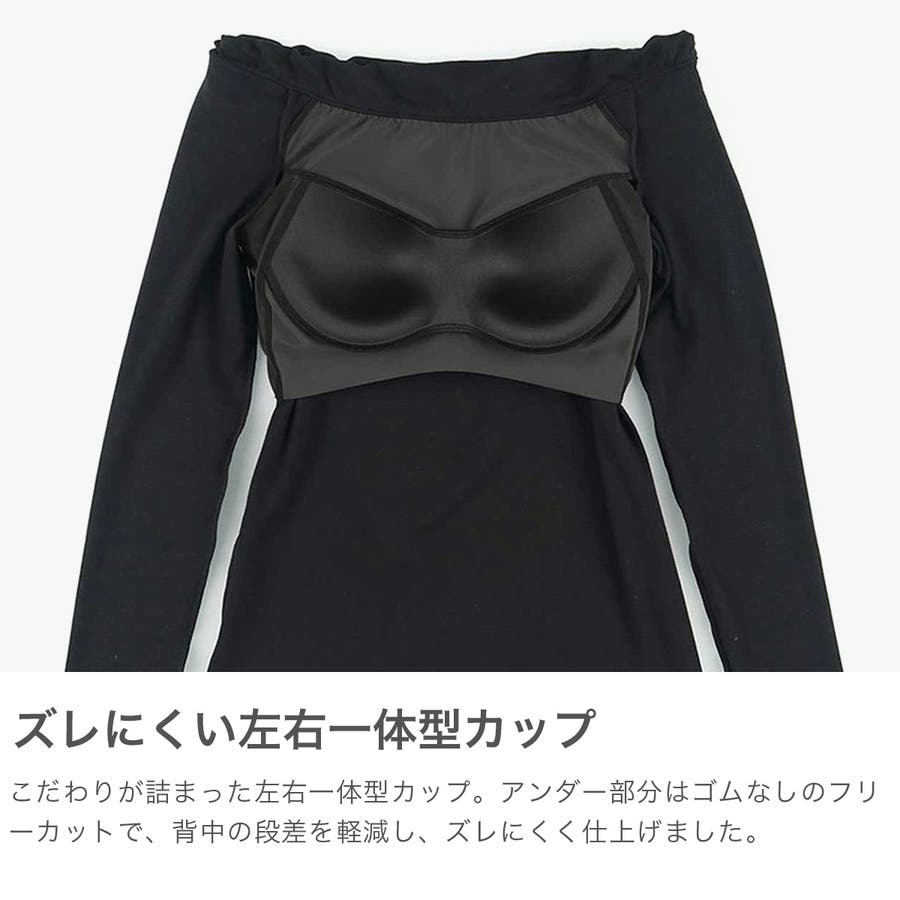 インナー選びに迷うことなく、1枚で着られるカップ付きのオフショルダーです。ボディラインに沿ったコンパクトなシルエットと、襟の折り返しがポイント。下着メーカーならではのこだわりが詰まったカップは、自然で綺麗なバストシルエットを追求しました。