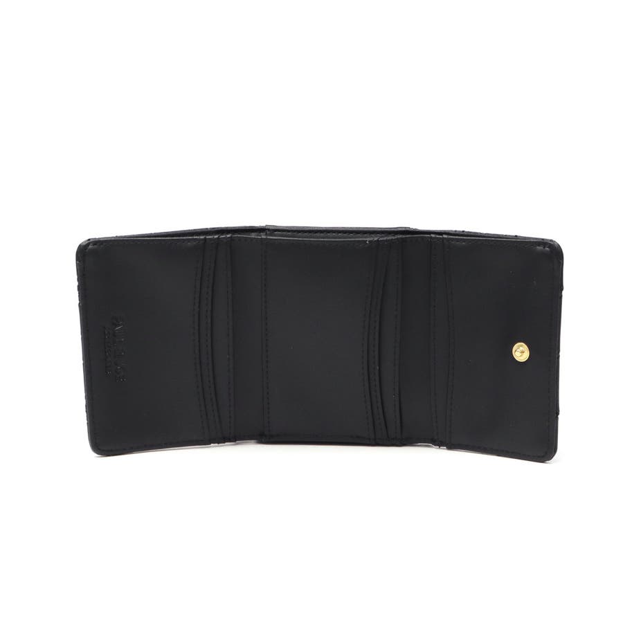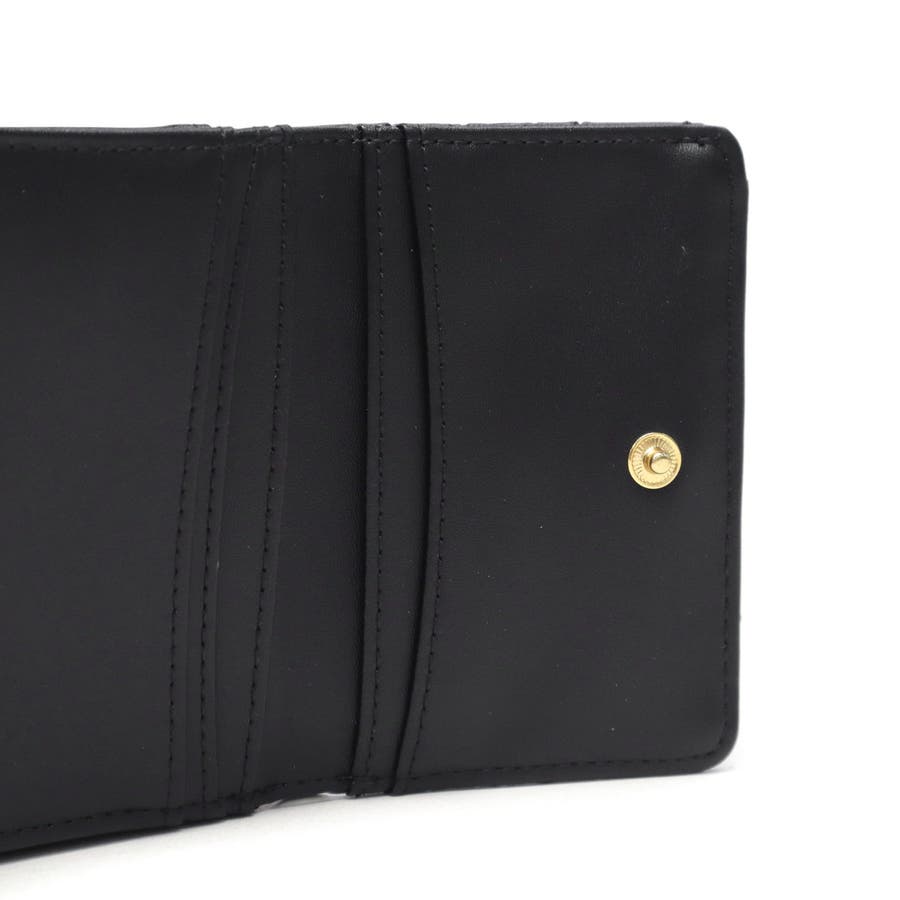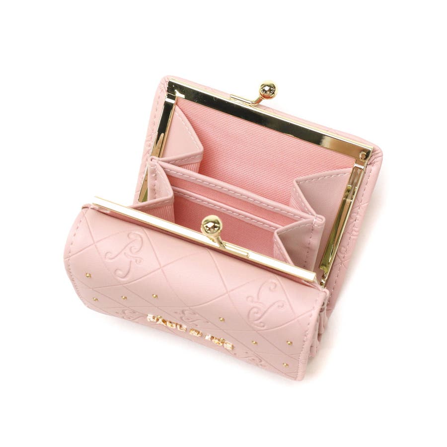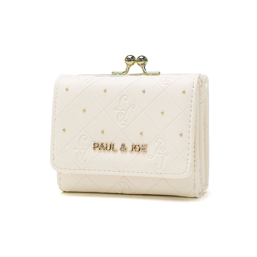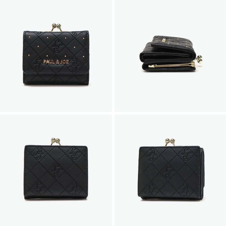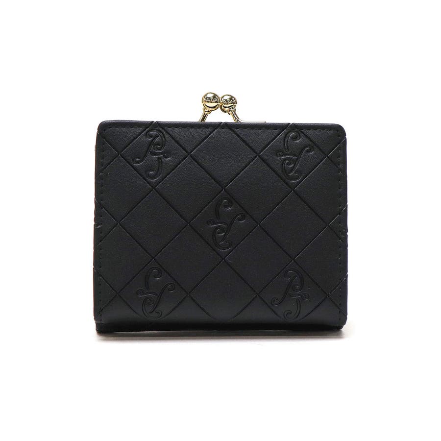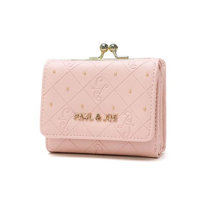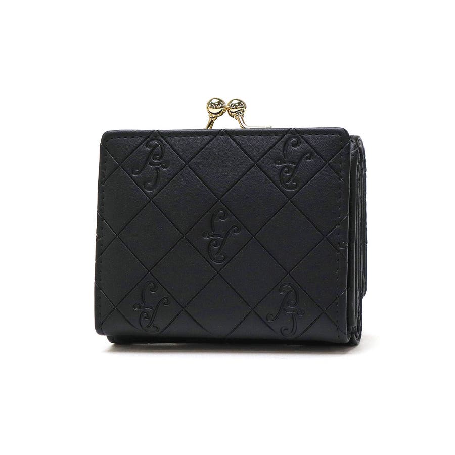 PJロゴのエンボスがおしゃれな三つ折り財布。ゴールドカラーのスモールスタッズがアクセントになっています。コンパクトながらも、かわいいがま口小銭入れや、紙幣もカードもしっかり入る優れもの。手元が華やぐ上品なデザインに注目です。