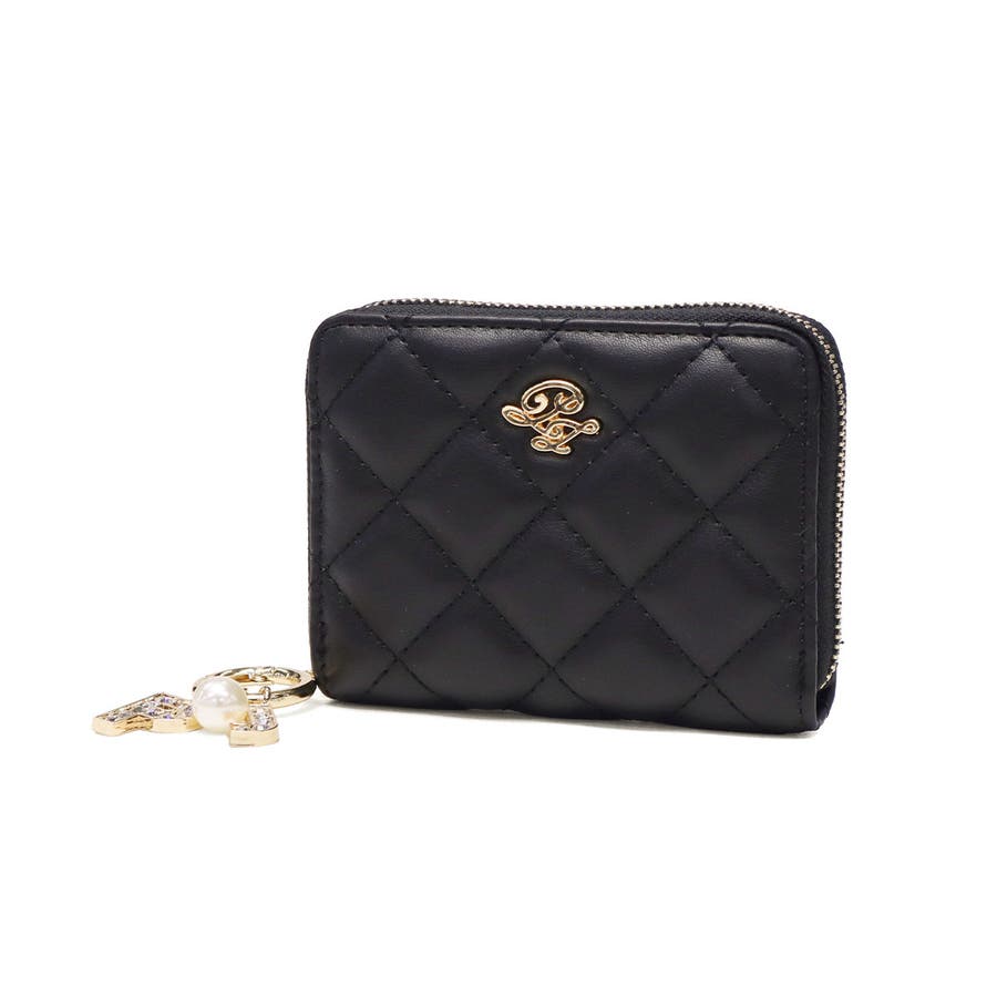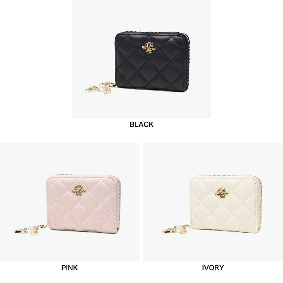 ふっくらとしたキルティングが魅力の『QUILTING』シリーズのコインケースです。ラインストーン入りのPJオリジナルチャームがきらめく、上品で高級感あふれるデザインです。カードポケット付きで、ミニ財布としても活躍。華やかさと実用性を兼ね備えた、大人の女性にぴったりのアイテムです。