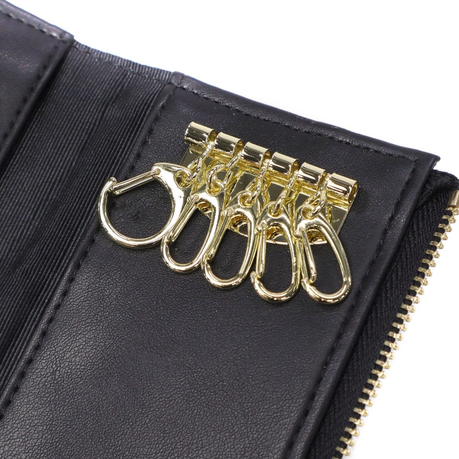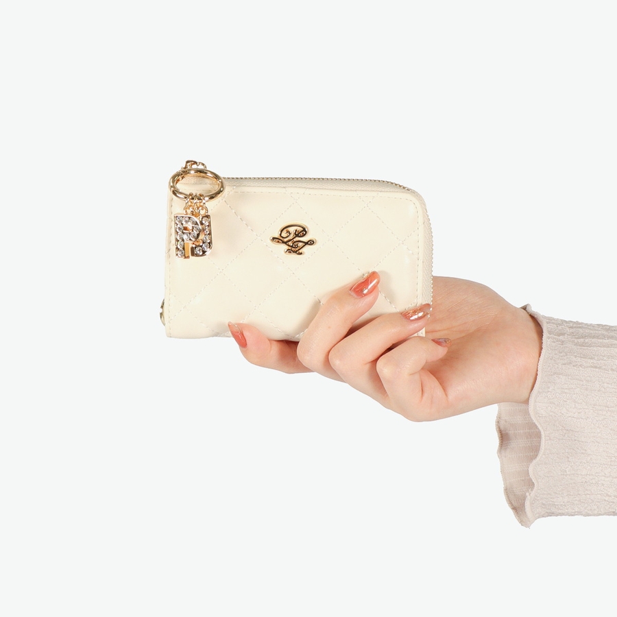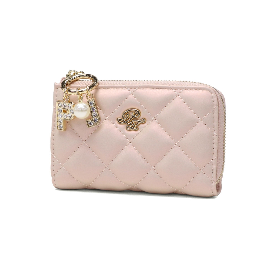 ふっくらとしたキルティングが魅力の『QUILTING』シリーズのキーケースです。ラインストーン入りのPJオリジナルチャームがきらめく、上品で高級感あふれるデザインです。L字ファスナーでスマートに持ち運べ、バッグの中でもかさばらない優秀デザイン。内側にはスマートキー対応リングとキーホルダー5つを備え、鍵を6本まで収納可能。華やかさと実用性を兼ね備えた、大人の女性にぴったりのアイテムです。