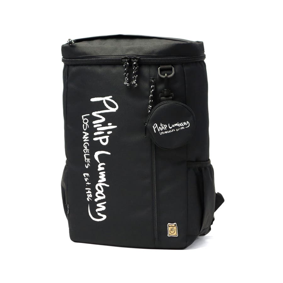 ロサンゼルスを拠点に活動するストリート系グラフィックアーティスト「Philip Lumbang/フィリップランバン」。こちらは、30L容量のボックス型リュックです。B4サイズが収まり、メインルームはPCなどが収納できるクッション付きのポケットを完備。ミニポーチが付属し、かわいいアクセントに。通学シーンから部活など、幅広くお使いいただける大容量設計となっています。
