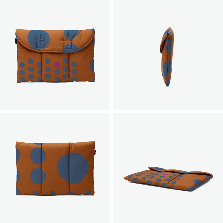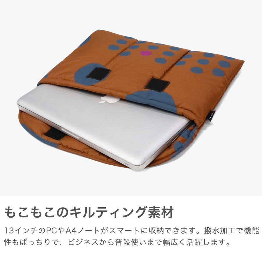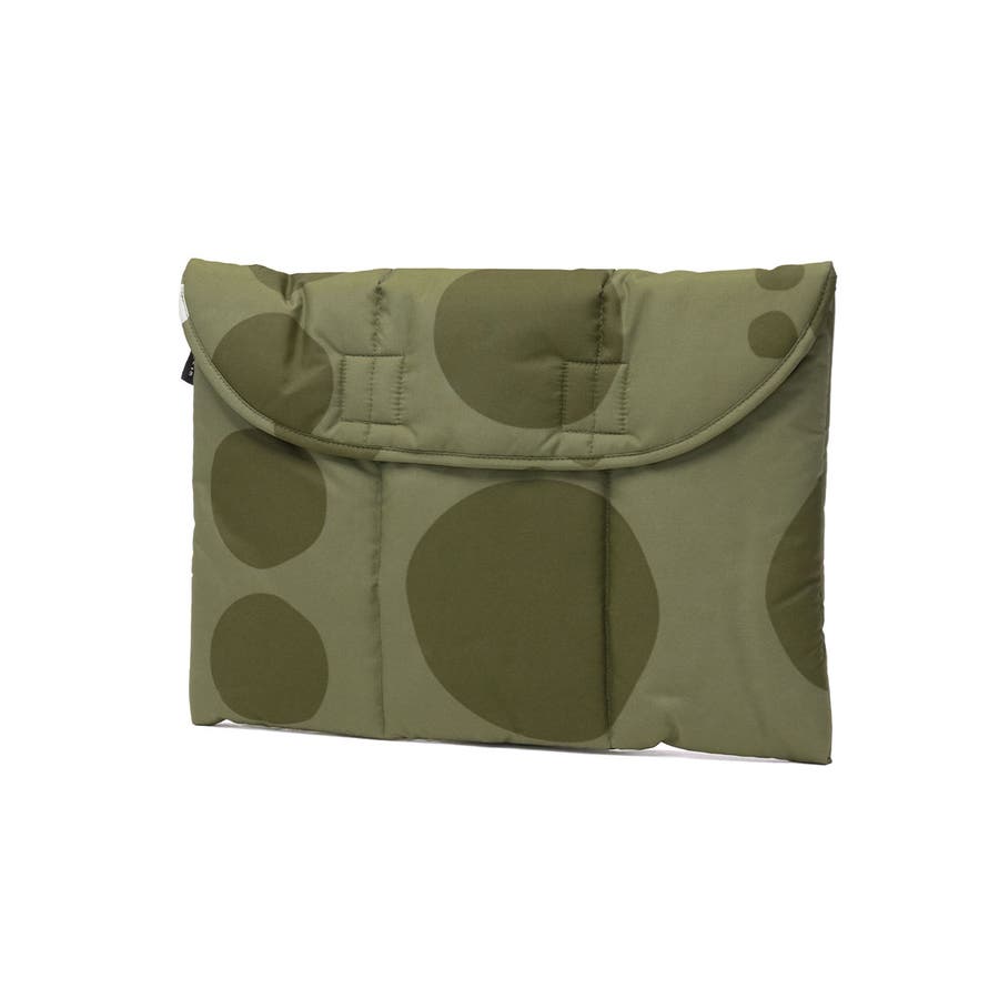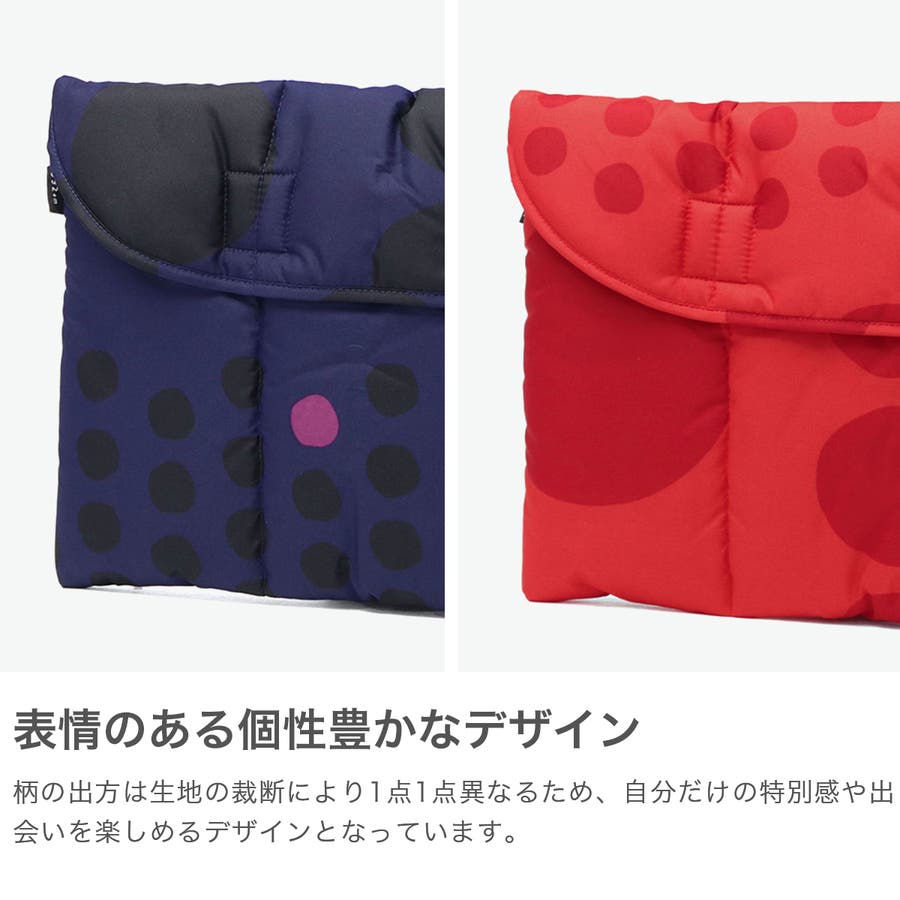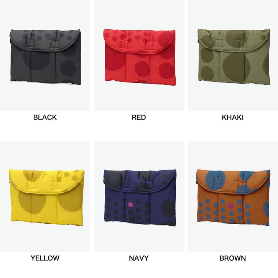 ドット柄が愛らしいデザインのパソコンケースとしても使えるクラッチバッグ。中綿入りでクッション性があり、大切な持ち物をやさしく守ります。A4サイズ対応でバッグインバッグとしてもおすすめです。