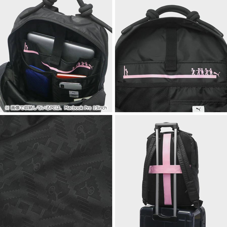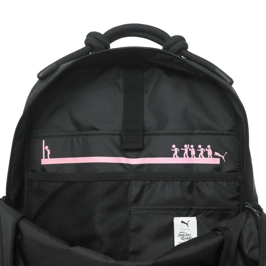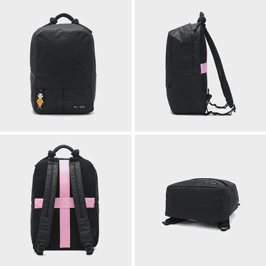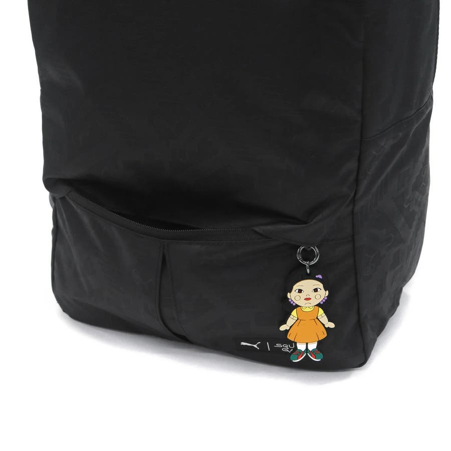 | PUMA×イカゲーム 特別なデザインに注目! PUMAと『イカゲーム』の世界観が融合したバックパックが登場。劇中で描かれている階段迷路をモチーフにしたカスタムパターンや、作品を象徴するキャラクターであるヨンヒ人形など、いたるところに『イカゲーム』の世界観を感じるアイテムに仕上がっています。 |