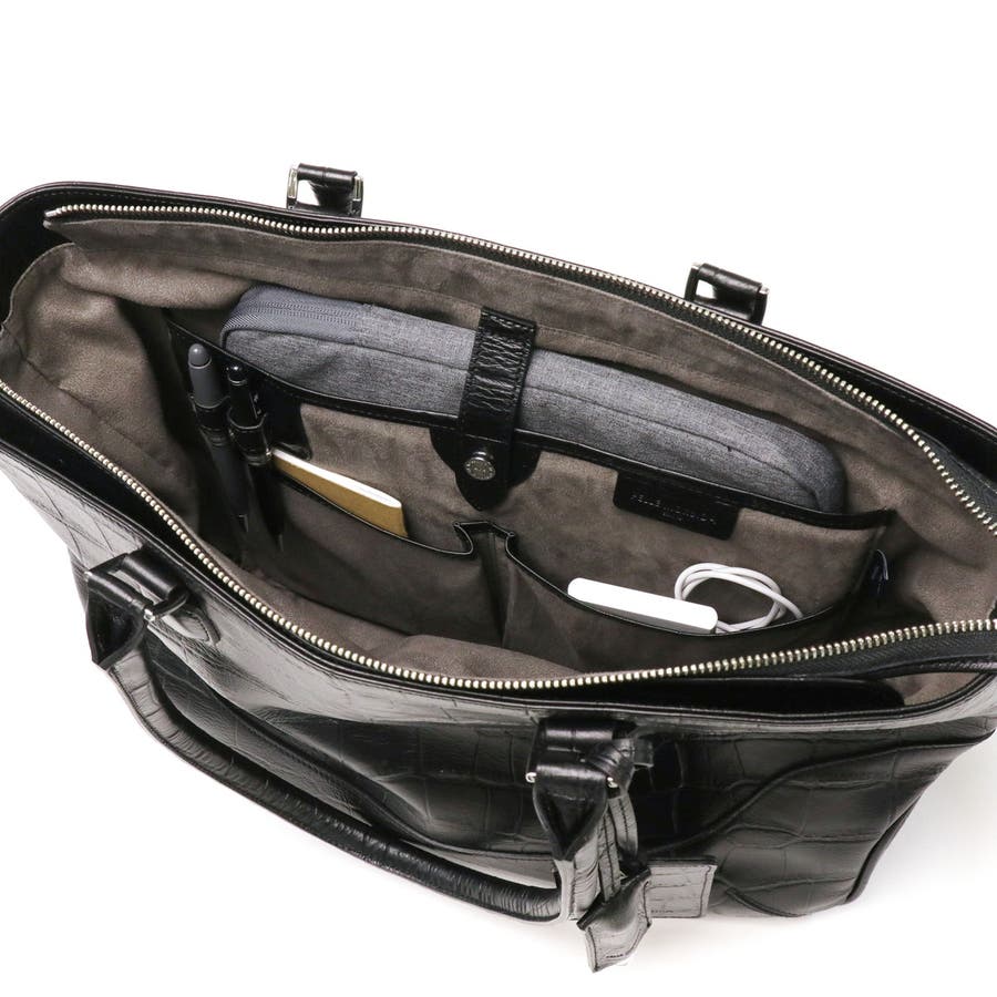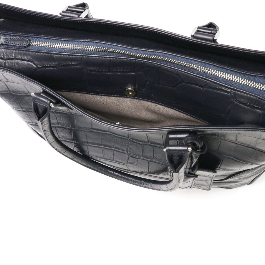 完成した船(バッグ)が世に出ていくというイメージから処女航海の名をつけた『Maiden Voyage』シリーズの2WAYトートバッグ。シュリンクレザーにクロコダイル風の型押しを施すことで、手触りは柔らかく艶感のある上品な仕上がりに。ベースはシンプルでありながらも華やかさを感じるルックスが魅力です。無駄を省いた機能的な設計で、ビジネスでも使いやすいアイテムとなっています。