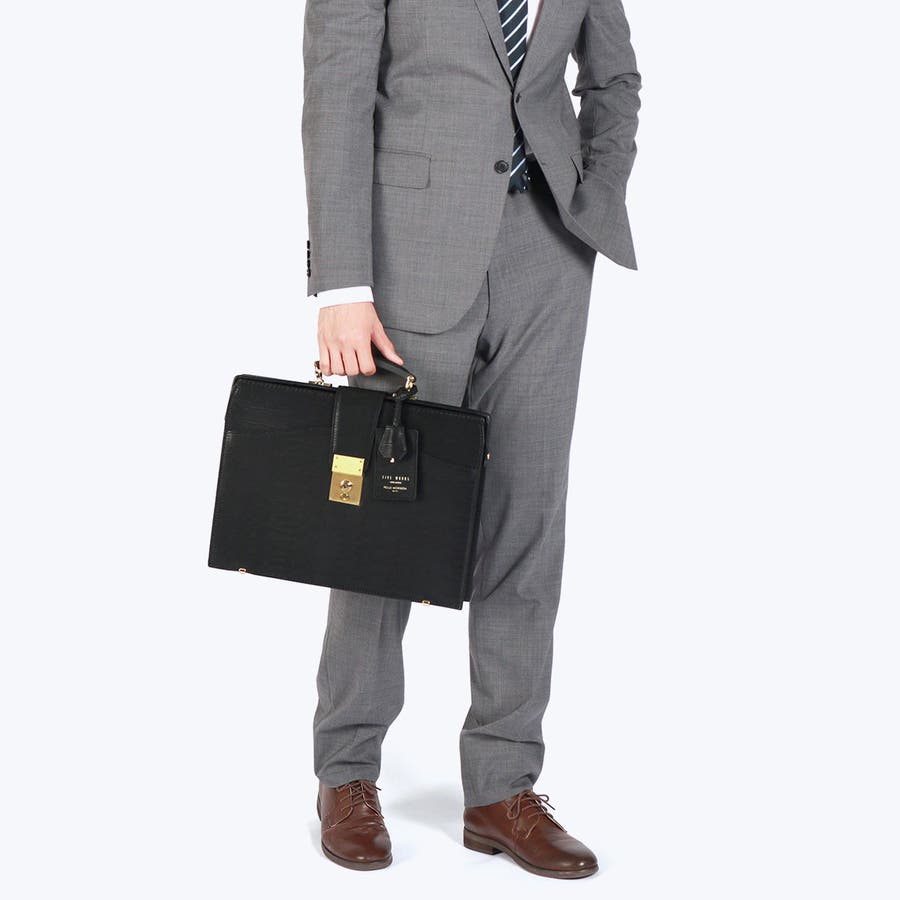 1890 年創業「林五」のバッグブランド「FIVE WOODS」と「PELLE MORBIDA」がコラボレーションしたトラディショナル雰囲気漂うダレスバッグ。デザインはベーシックなタイプでありながら、マチ幅は抑え普段のビジネス使いがしやすいスマートな逸品に仕上がっています。
