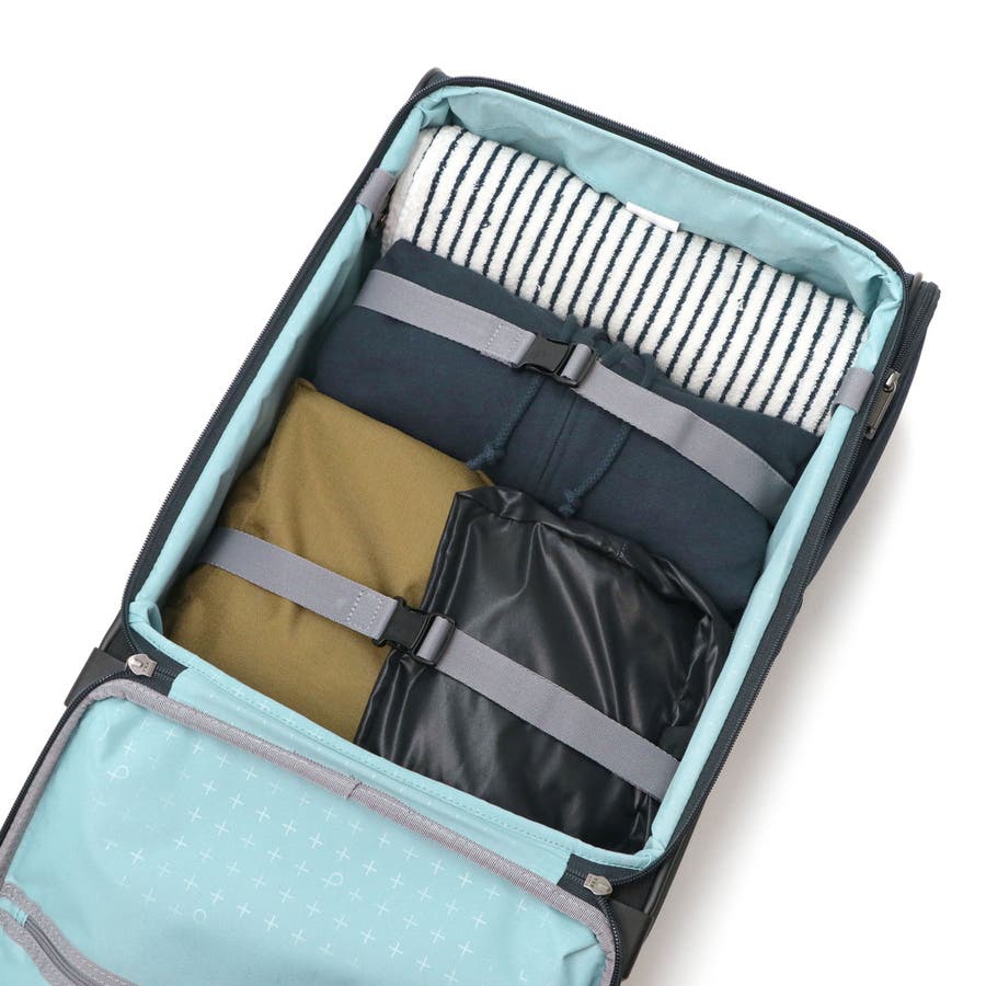 本体にはフロントとサイドに、小物等をすぐに取り出せるファスナーポケットを搭載し、荷物の取り出しや管理をストレスフリーに行うことができます。また、メインルーム内部には、フルオープン時に中を隠せる、着脱可能なフラップが付属しているなど、セキュリティ面にも配慮した設計になっています。