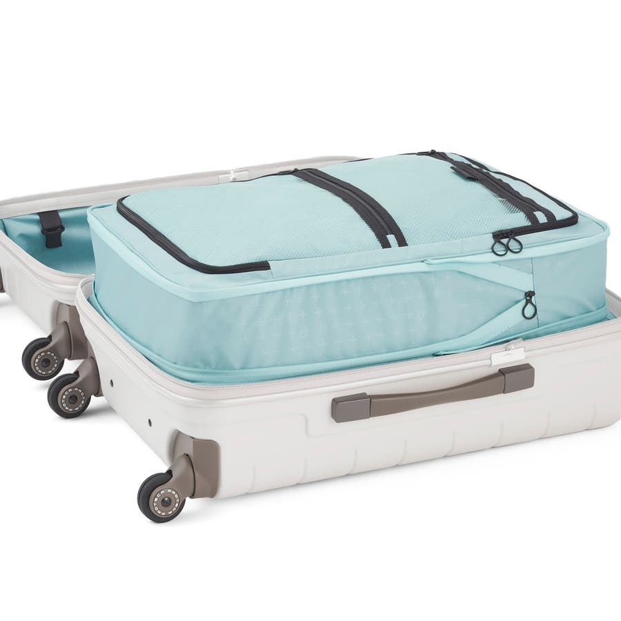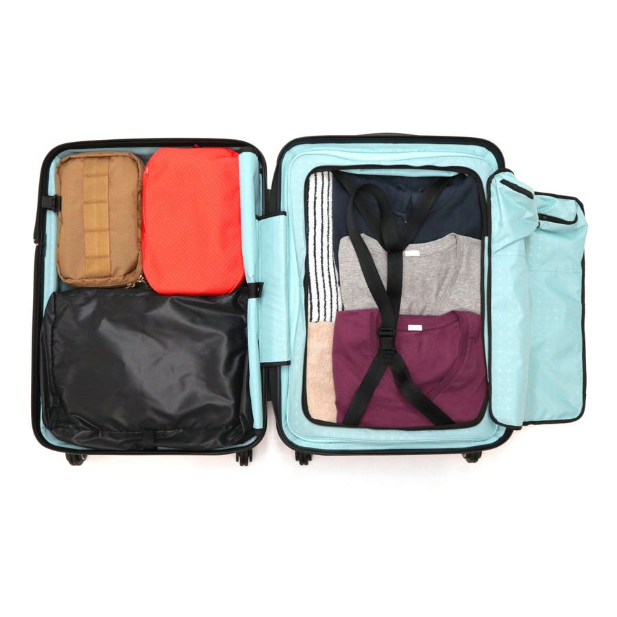 タテにもヨコにも開ける独自のファスナーシステムを採用した『360』シリーズがリニューアル。こちらは53L容量のスーツケースです。エキスパンドする内装使用にアップデートしたことで、さらにパッキングの選択肢がひろがりました。どこからでも開けられる360°オープン仕様で、移動中にちょっと荷物を出し入れしたい時や、狭い室内での開閉など、多彩なシーンでその実力を発揮します。