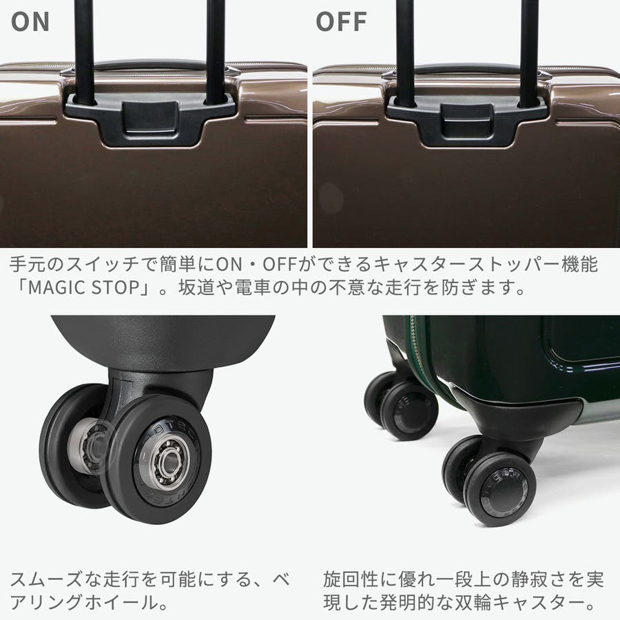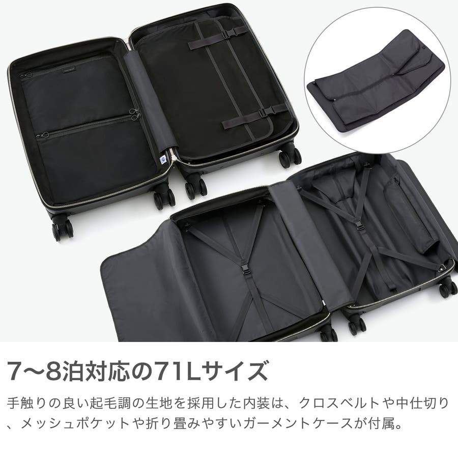 プロテカ「J5 Collection シスイ」のMサイズスーツケース。7~8泊の旅行に適した71Lサイズで、TSAロック付きのジップタイプ。ストッパー機能「MAGIC STOP」で快適な移動を実現します。耐久性に優れたボディと洗練されたデザインが魅力。男女問わず使える上品な佇まいで、国内外の旅やビジネスシーンに最適です。