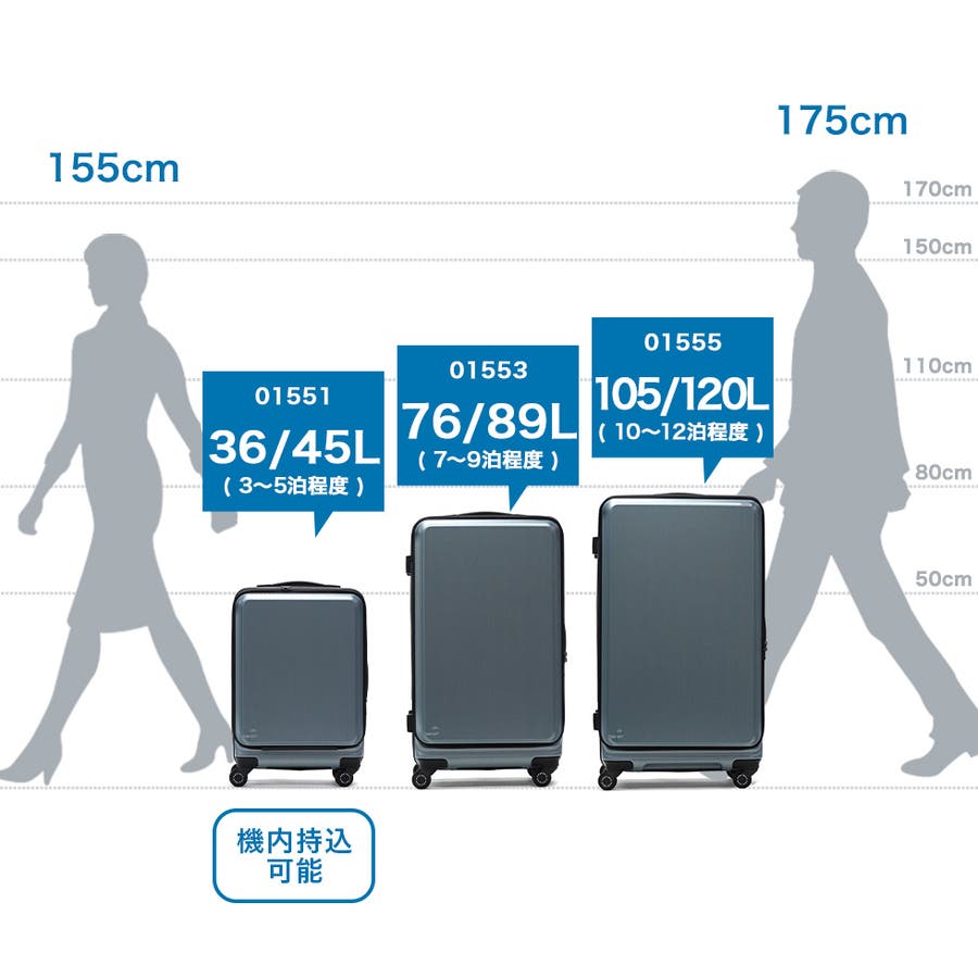 ・エキスパンダブル機能付きの製品は、マチ拡張時の3辺の和が機内持ち込みサイズ、預け入れ無料サイズを超える場合がございます。また、航空会社や飛行機の機種などによって規定が異なりますので、予めご確認の上お求めください。