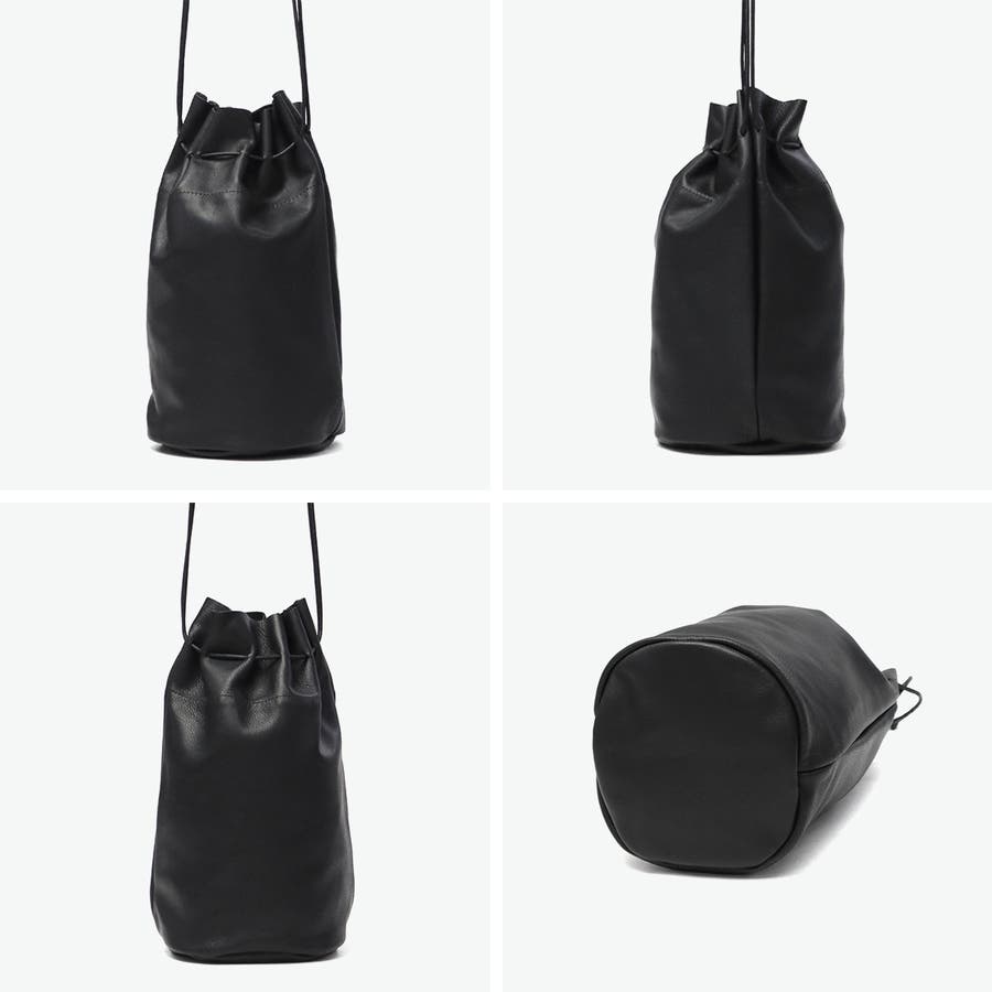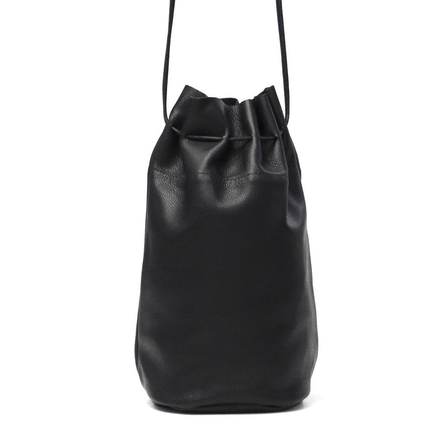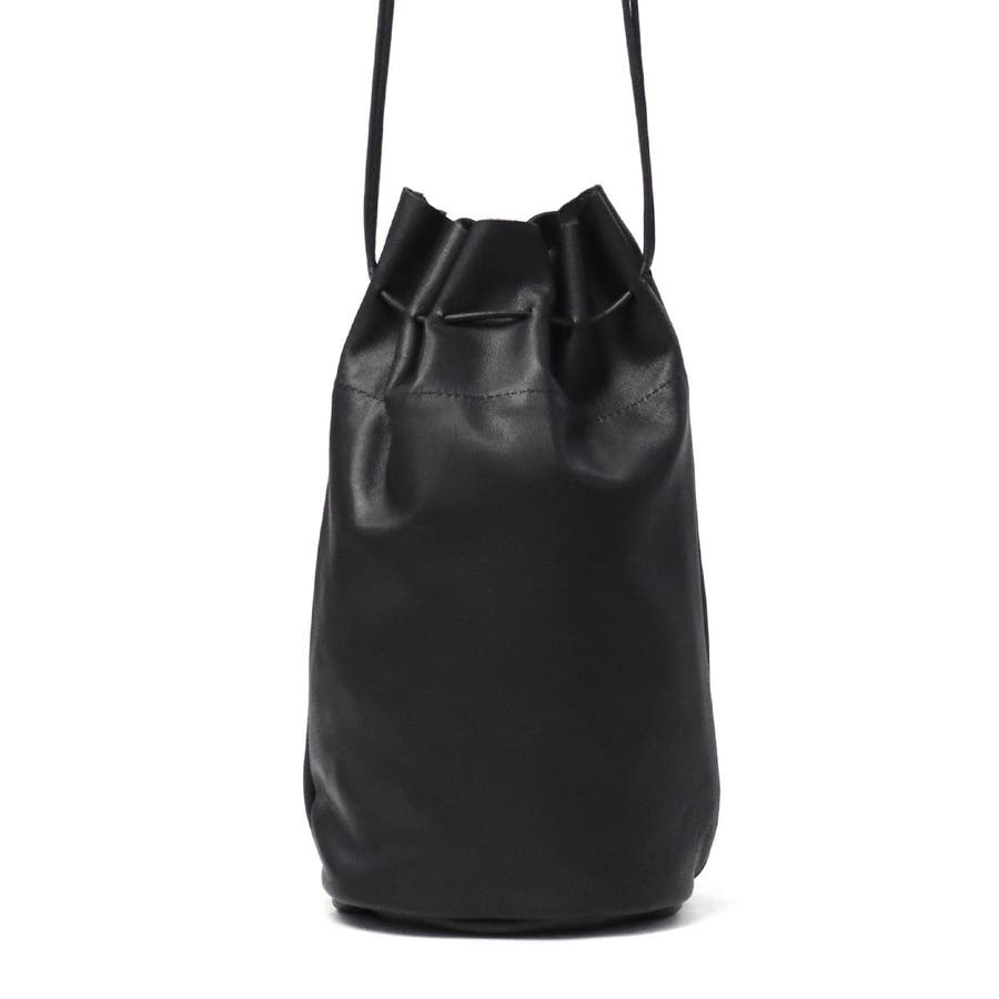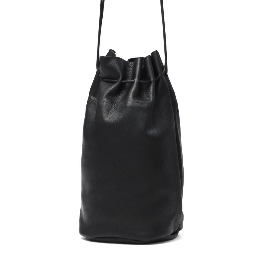 艶やかで柔らかさのあるやぎ革を使用したショルダーバッグ。巾着型のコロンとしたフォルムと、キュッと絞った時のドレープがとても美しく魅力的です。コーデの邪魔にならない華奢なショルダーストラップは、斜めがけや肩掛け、手持ちなど、気分に任せて自由に持ち方を変えられます。