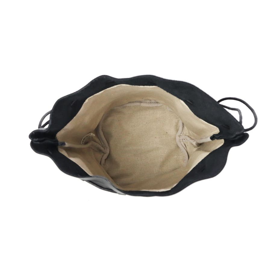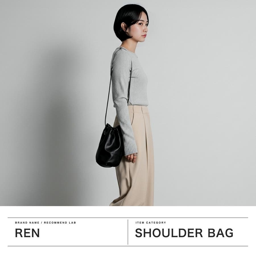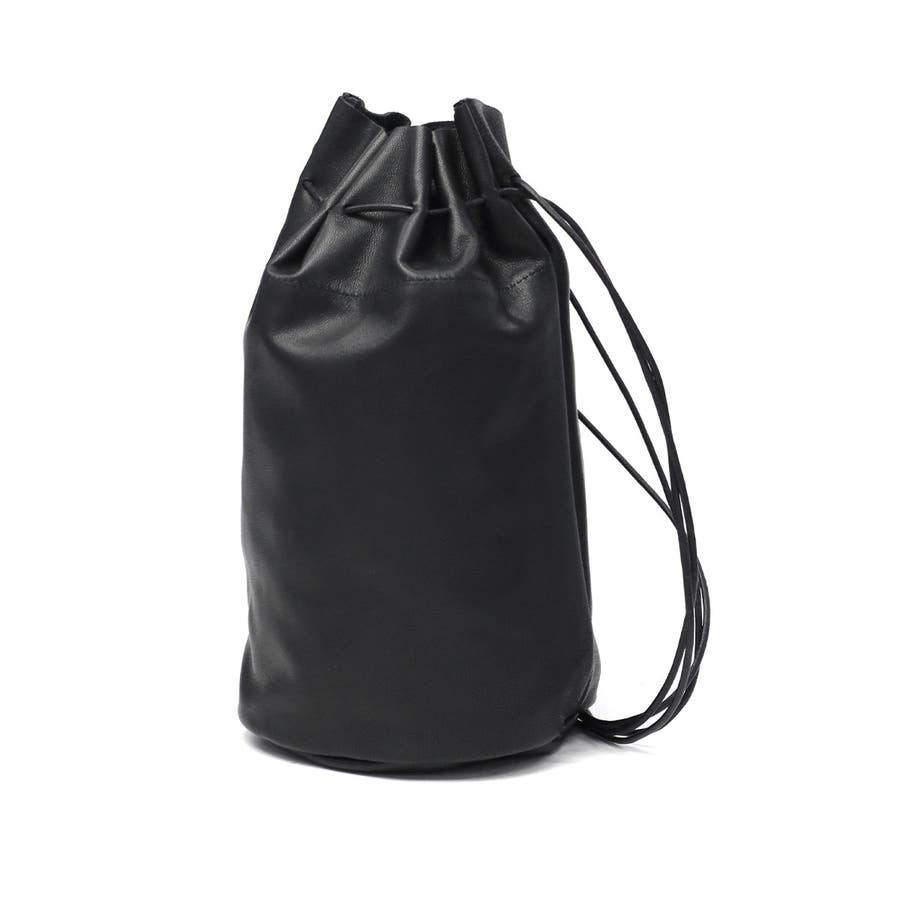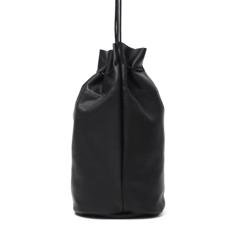 艶やかで柔らかさのあるやぎ革を使用したショルダーバッグ。巾着型のコロンとしたフォルムと、キュッと絞った時のドレープがとても美しく魅力的です。コーデの邪魔にならない華奢なショルダーストラップは、斜めがけや肩掛け、手持ちなど、気分に任せて自由に持ち方を変えられます。