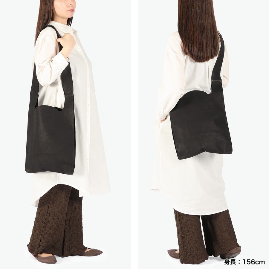 ナチュラルな表情を持ったレザーをふんだんに使用し、シンプルに仕上げたショルダーバッグ。背負った際身体に優しく馴染む、柔らかな質感が魅力になっています。ショルダー部分を結ぶことで長さを変更し、肩掛け、斜め掛けとしても使用可能。シーンごとに使い分ければ、違った雰囲気をお楽しみいただけます。