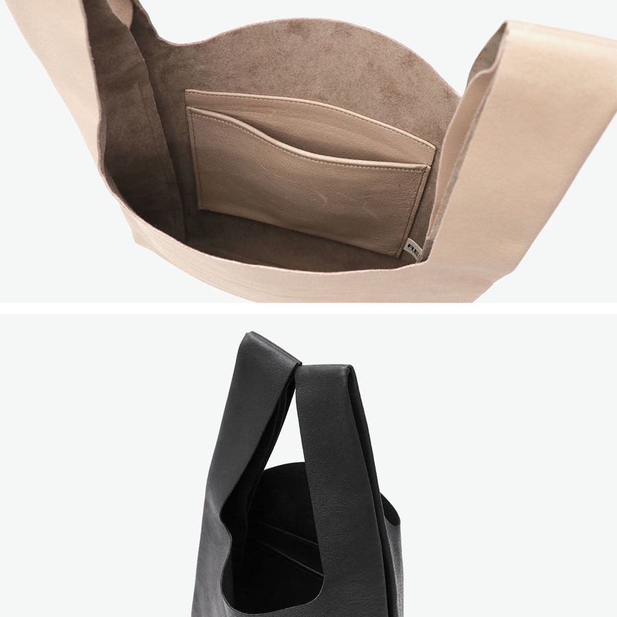 暮らしに馴染み深いプロダクトである「レジ袋」がデザインモチーフのバッグです。切りっぱなしの部分をあえて処理しすぎず、革ならではの雰囲気を残すなど、シンプルだからこそこだわりの光るデザイン。ピッグレザーのくったりと柔らかな質感としなやかさ、ラフに扱える丈夫さが魅力です。馴染のあるサイズ感が使いやすく、毎日の相棒にちょうどいいアイテムです。