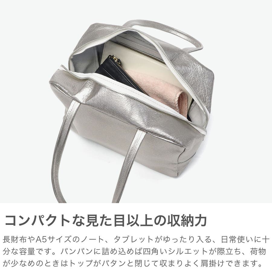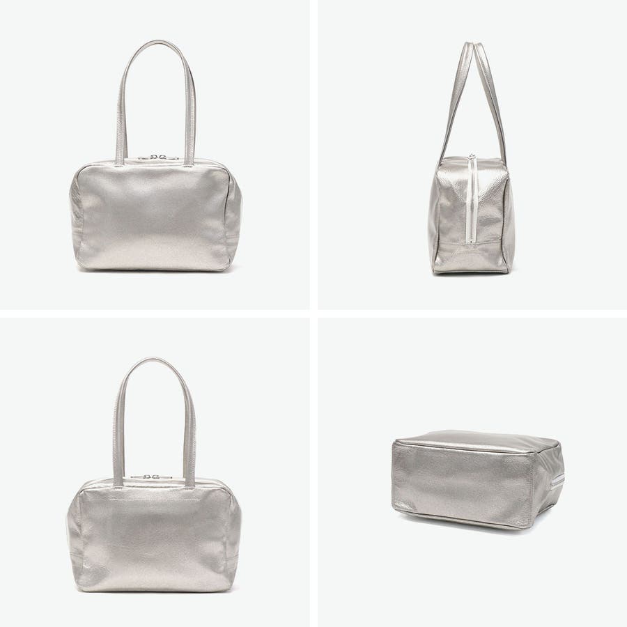 四角く幅広の底マチによってつくられる立体的なシルエットが魅力のミニボストンバッグ。コンパクトながら、外出時に必要な物はしっかりと収まるサイズ感です。長すぎないハンドルで、肩掛けでも手持ちでもバランスよく見えるのもポイント。上品な光沢感がコーディネートのアクセントになる、こだわりの詰まったアイテムです。